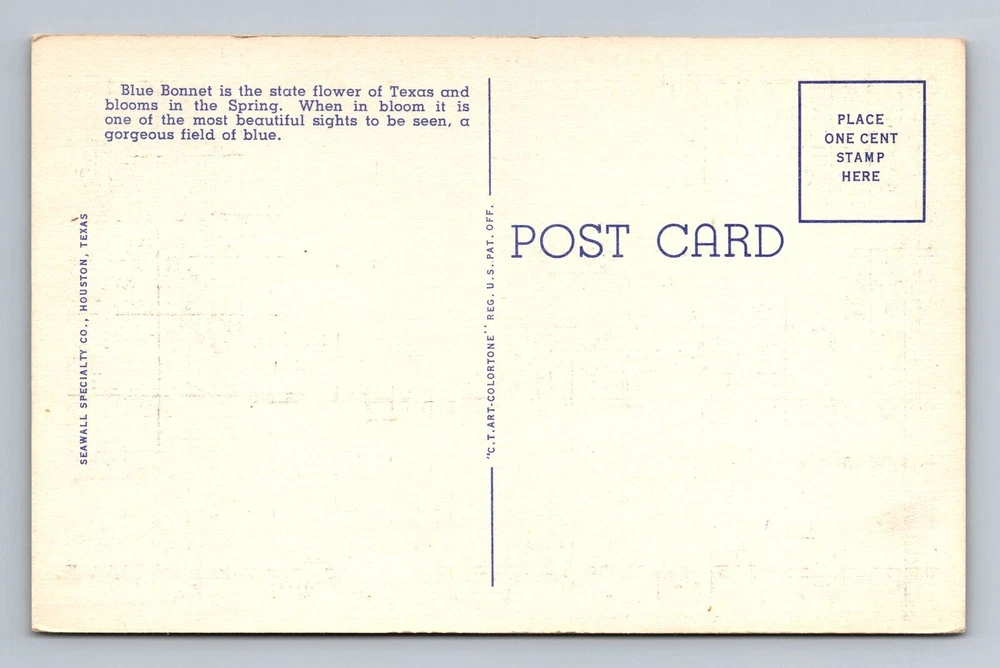 Blue Bonnets, The Texas State Flower, State Flag, State Capitol Vintage Postcard