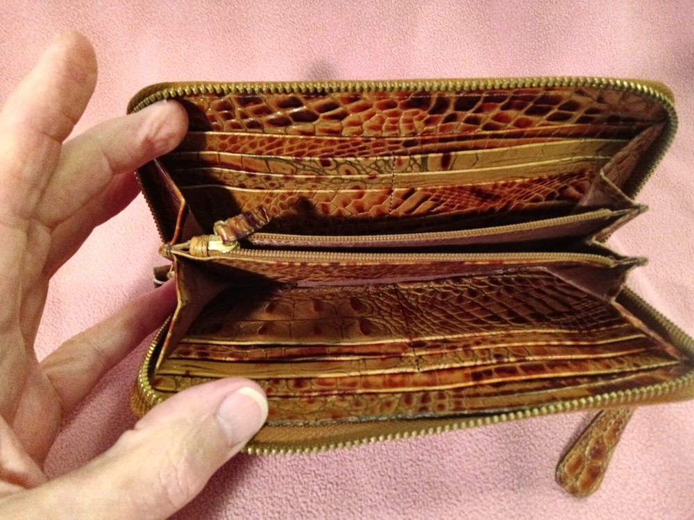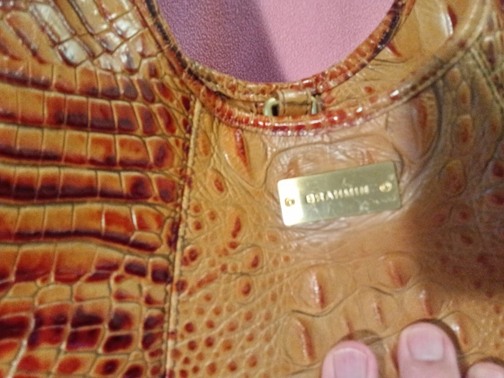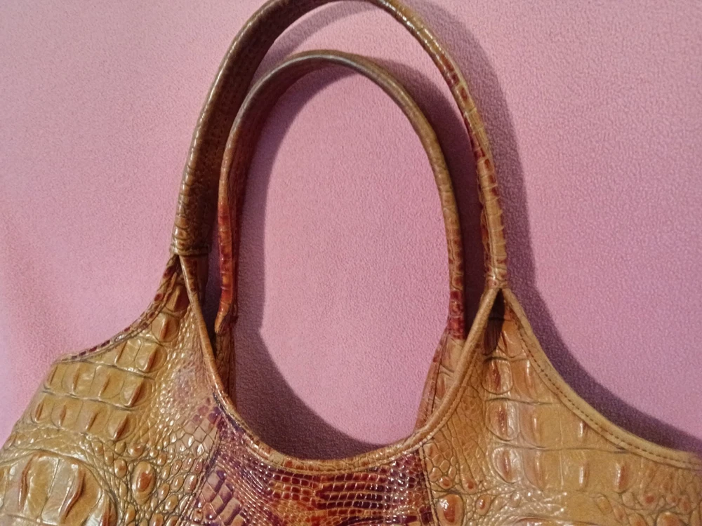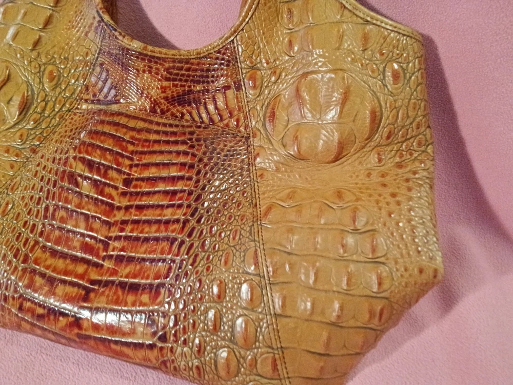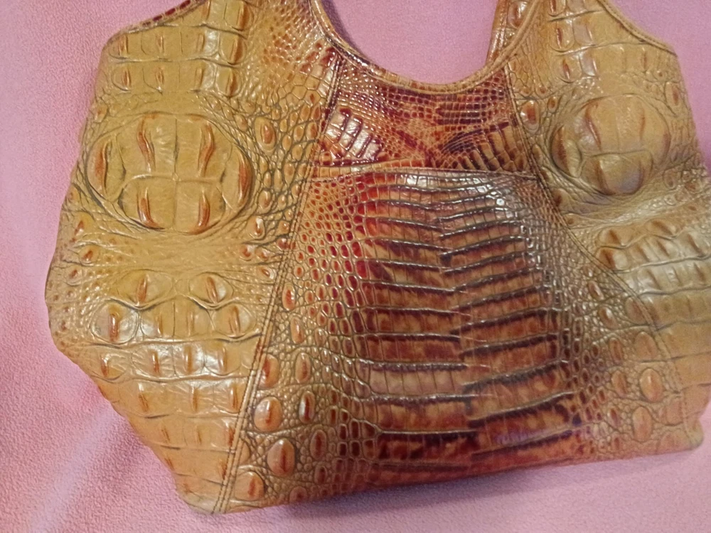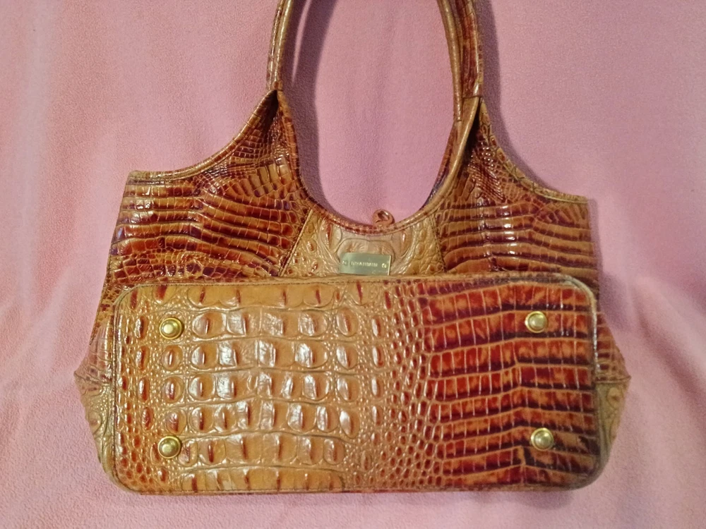 Brahmin Brown Pecan Leather Croc Double Handle Hobo Purse with Wallet Excellent Condition