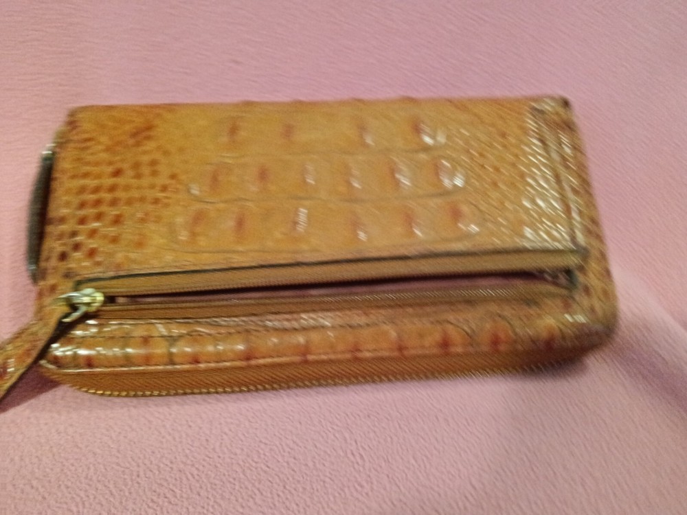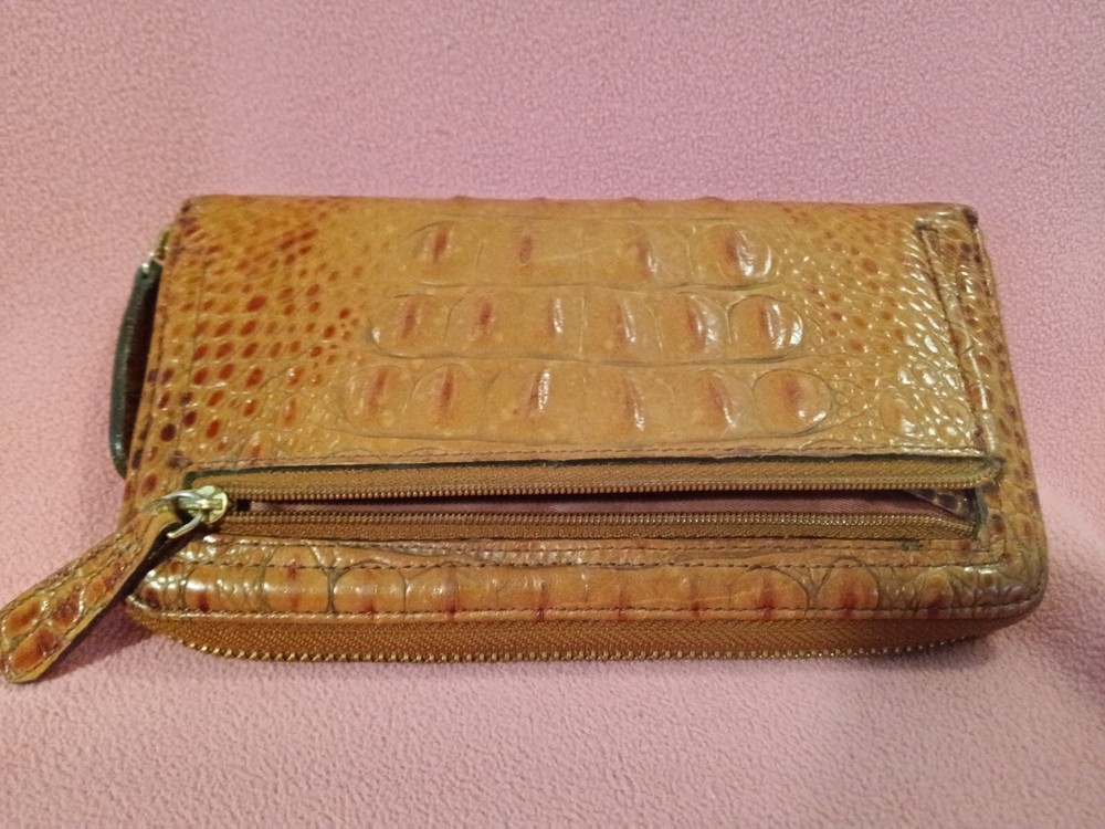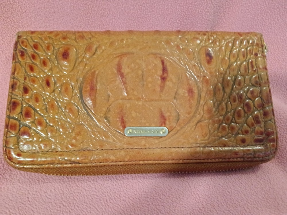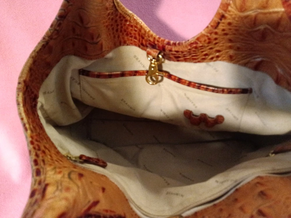 Offered is a beautiful Brahmin Leather Bag hobo shoulder bag and matching wallet: Brown exterior color and embossed croc design on brown leather Features an inside gold colored buckle closure and double handles made of the same leather Lined with Brahmin Logo suede Four brass studs on the bottom of the bag. Features one large zip inner pocket and two smaller open pockets, two pen slots, and a key clip Features one outer pocket Made of high-quality leather and has gold toned brass hardware. The double handles are both made of leather. Included is a matching wallet, zip closure, outer zip pocket, inner zip pocket and multiple card slots Also includes original dust bag Purchased in 2012 at an upscale department store, offered by original owner Please view pictures and read condition statement