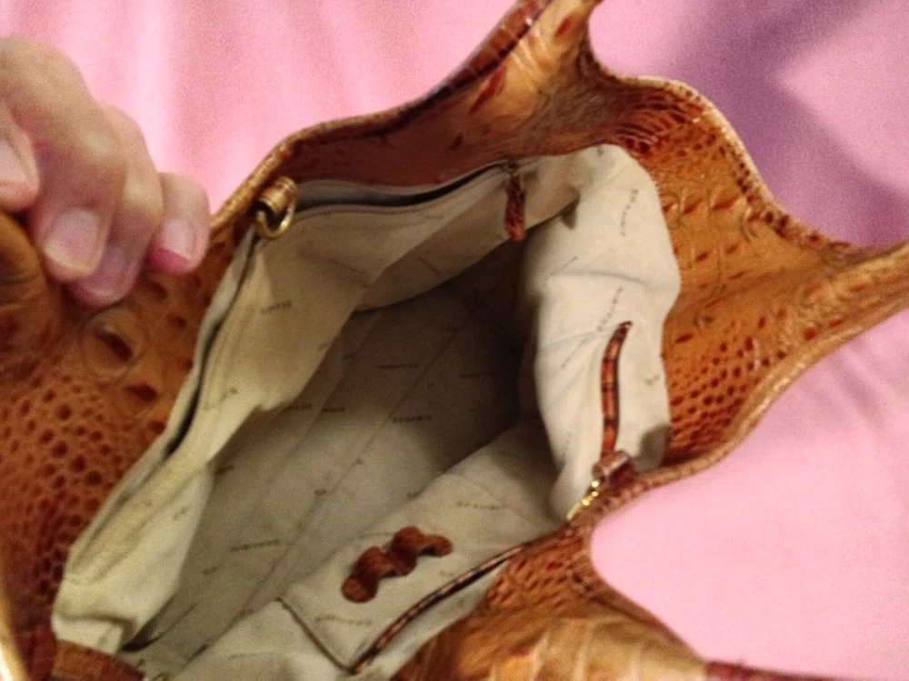 Country/Region of Manufacture: Unknown Shape: Rectangle Handle Drop: 9" Accents: Logo Bag Height: 9 in Style: Hobo Bag Hardware Color: Gold Bag Depth: 5 in Finish: Stamped/Embossed Department: Women Product Line: Brahmin Handle Style: Double Handles Brand: Brahmin Pattern: Crocodile embossed Exterior Material: Leather Theme: Classic, Designer Size: Medium Handle/Strap Color: Brown Exterior Color: Brown Seller Notes: “Excellent used condition, no stains or marks or tears.” Handle/Strap Material: Leather Bag Width: 15 in Lining Color: Beige Features: Bottom Studs, Inner Pockets, Key Clip, Lined, Outer Pockets, Pockets Occasion: Business, Casual, Formal, Party/Cocktail Closure: Buckle Lining Material: Canvas, Fabric, Suede Hardware Material: Brass