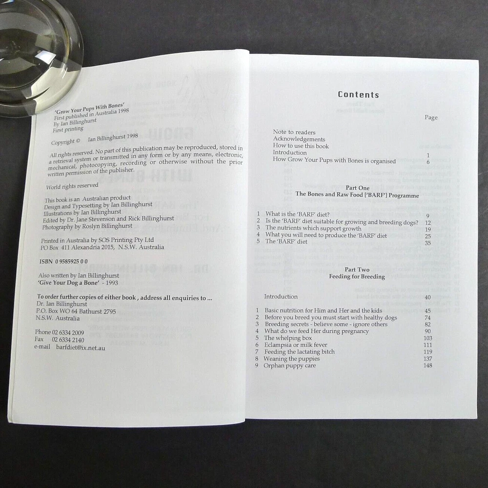 "Grow Your Pups with Bones" and "Give Your Dog a Bone" by Dr. Ian Billinghurst are groundbreaking books that challenge conventional pet nutrition. They introduce the BARF (Bones and Raw Food) diet, emphasizing natural, raw ingredients for optimal canine health. These books offer practical guidance for dog owners and breeders, promising improved vitality and reduced skeletal issues through evolutionary-based feeding principles. Grow Your Pups with Bones The BARF Programme for Breeding Healthy Dogs and Eliminating Skeletal Disease Give Your Dog a Bone The Practical Commonsense Way to Feed Dogs for a Long Healthy Life These books are in great condition, both signed. ~ ~ ~ Please examine the photos closely. They are an important part of the description and represent the exact item you will receive. I am happy to provide more photos and answer specific questions about this book or any item in my shop. I ship daily and all orders are wrapped with care including cardboard for protection.