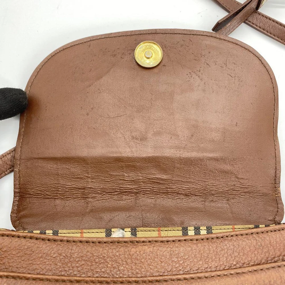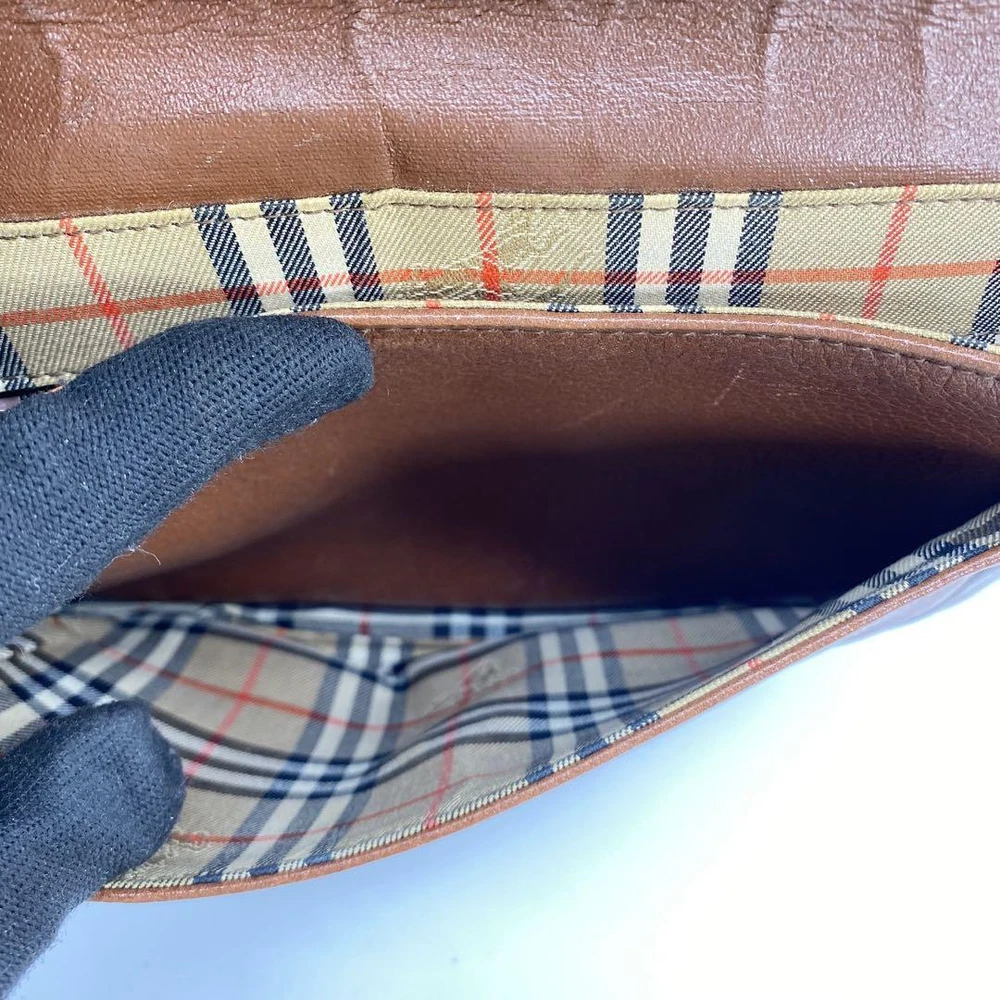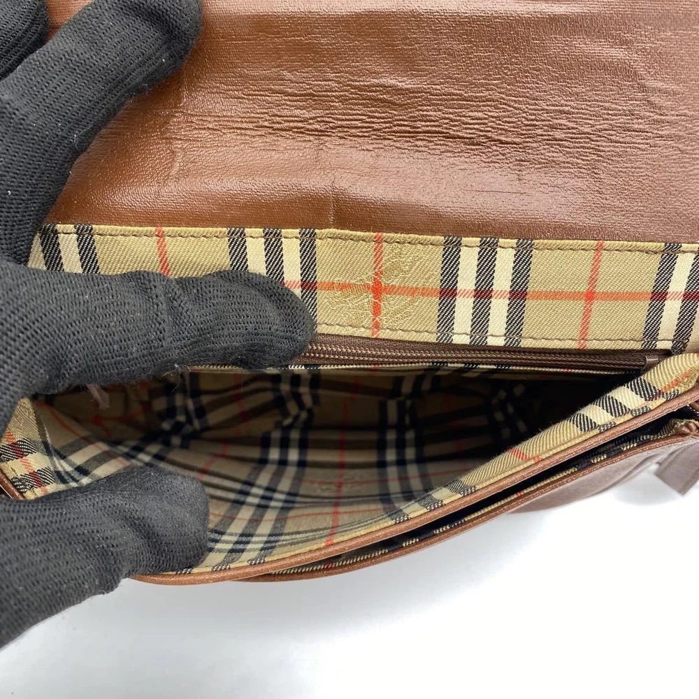 Burberry Shoulder Bag Nova Check Leather Brown Authentic F1114663