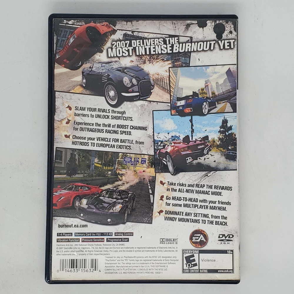 Brand: Electronic Arts Video Game Series: Burnout Series UPC: 0014633156324 MPN: 15632 Release Year: 2007 Manufacturer Warranty: NONE gtin13: 0014633156324 Region Code: NTSC-U/C (US/Canada) Publisher: Electronic Arts Game Name: Burnout Dominator Rating: E10+ (Everyone 10+) Country/Region of Manufacture: United States Platform: Sony PlayStation 2 Genre: Racing Style: PHYSICAL_VIDEO_GAME_SOFTWARE Features: Complete Edition Sub-Genre: Car Racing