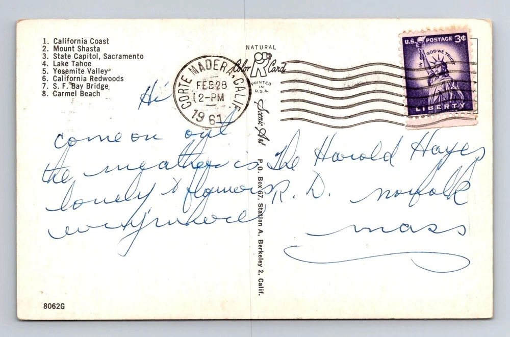 Country: USA Original/Licensed Reprint: Original Material: Paper Era: Vintage Size: Standard (5.5 x 3.5 in) Subject: Cities & Towns Unit of Sale: Single Unit Country/Region of Manufacture: Unknown Theme: Cities & Towns Postage Condition: Posted Type: Printed (Lithograph) Region: California City: California