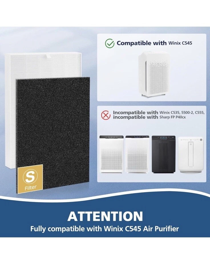 Cabiclean C545 H13 True HEPA Replacement Filter S Compatible for Winix C545 Air. Shipped with USPS Ground Advantage.