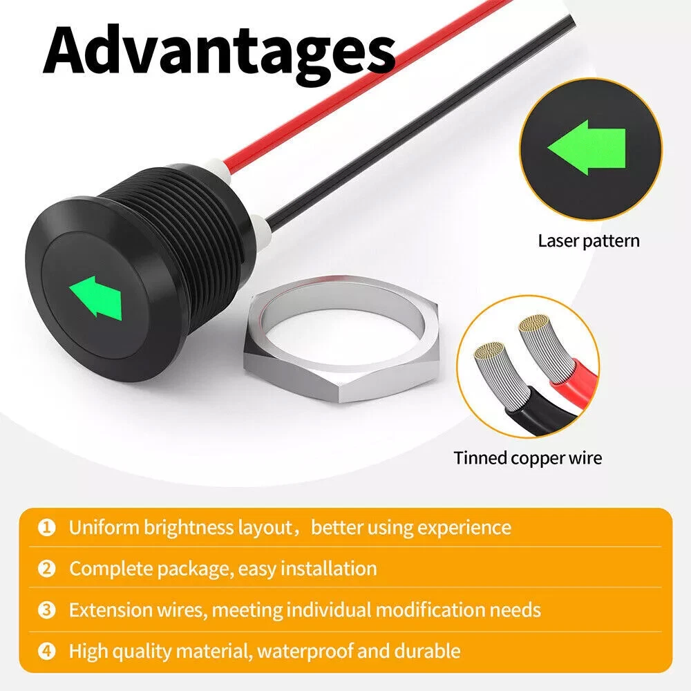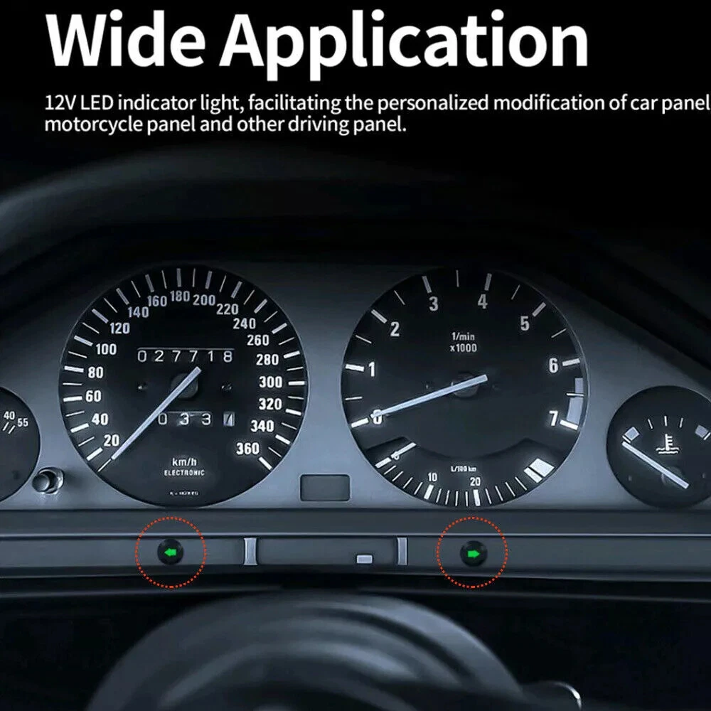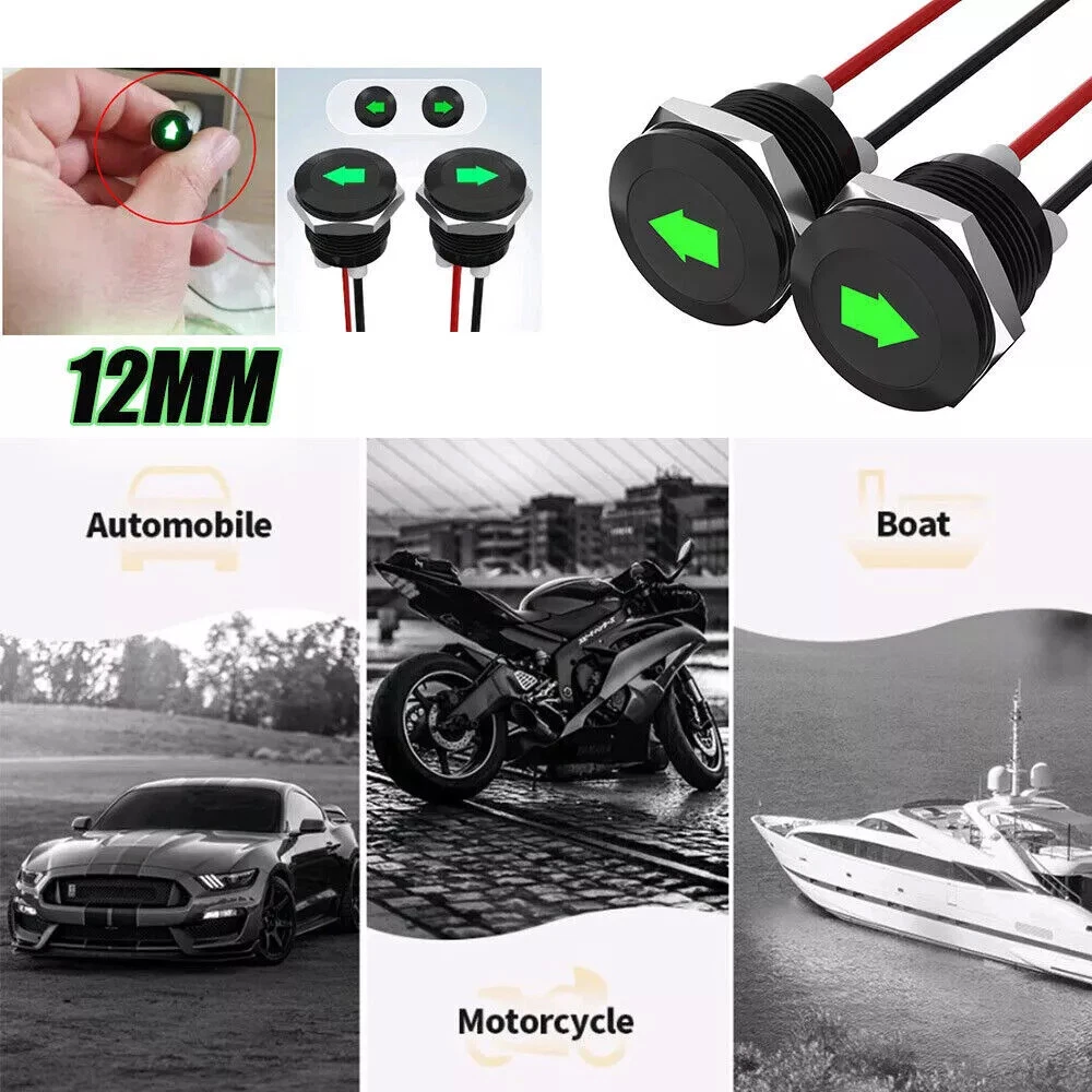 Car Indicator Dash Light Turn Signal Light LED Single Arrow 2Pcs Green 12V Metal Description: 100% Brand New and high quality. About this item Product name: black oxide LED metal signal indicator (GREEN) Product specifications: lamp voltage: 12VDC; rated voltage: 300V; wire gauge: 26AWG Product size: cable length: 8 inches/20 mm; installation cutting hole: 12mm (1/2") Bulb type: LED; LED color: green These LED indicators are suitable for cars, trucks, ships, etc. Package includes: 2pcs signal indicator Notice: 1. Please allow 2-3% error due to manual measurement. Please make sure you do not mind before you bid. 2. The colors may have different as the difference display, please understand.