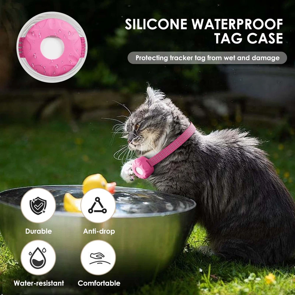 Cat Tracker, GPS Tracker Compatible with Apple Find My App(Only iOS), Waterproof Cat Tracker Collar with Bell and Safety Elastic Buckle, No Monthly Fee Pet Trackers, Works with Any Collar, Pink 【No Monthly Fee】This cat tracker does not require a monthly fee. Simply download the Find My application to directly track your beloved pets such as cats and dogs. This cat gps tracker requires no SIM card and no monthly fees. All communication in Find My network is anonymous and encrypted to protect your privacy. (Only compatible with iOS system). 【Precise Positioning】When your cat is out of Bluetooth range, you can track and see its exact location in real time on the Find My app's map, and even turn on navigation to guide you to your cat's location. The location is updated in real time to pinpoint your cat. 【VIRTUAL FENCE AND LOCATION HISTORY】You can set up a safe area in Find My App, your phone will receive an audible alert when your cat leaves the area, and you can locate them with the Find My App map real-time tracking feature. View their location history to see where they've been. 【Lightweight & Multipurpose】The pet tracker for cats is compact and lightweight, weighing only 0.2 ounces, making it almost imperceptible when worn on a cat; This cat tracker with a collar can be used for dog collars and cat collars. 【GPS Cat Tracker】The cat collar with GPS tracker package includes 1 cat collar, 1 gps cat tracker, and 1 user manual. 【Built-in Speaker】This tractive gps cat tracker can help you quickly and accurately find the precise location of cats near you by playing 80-100dB sound.