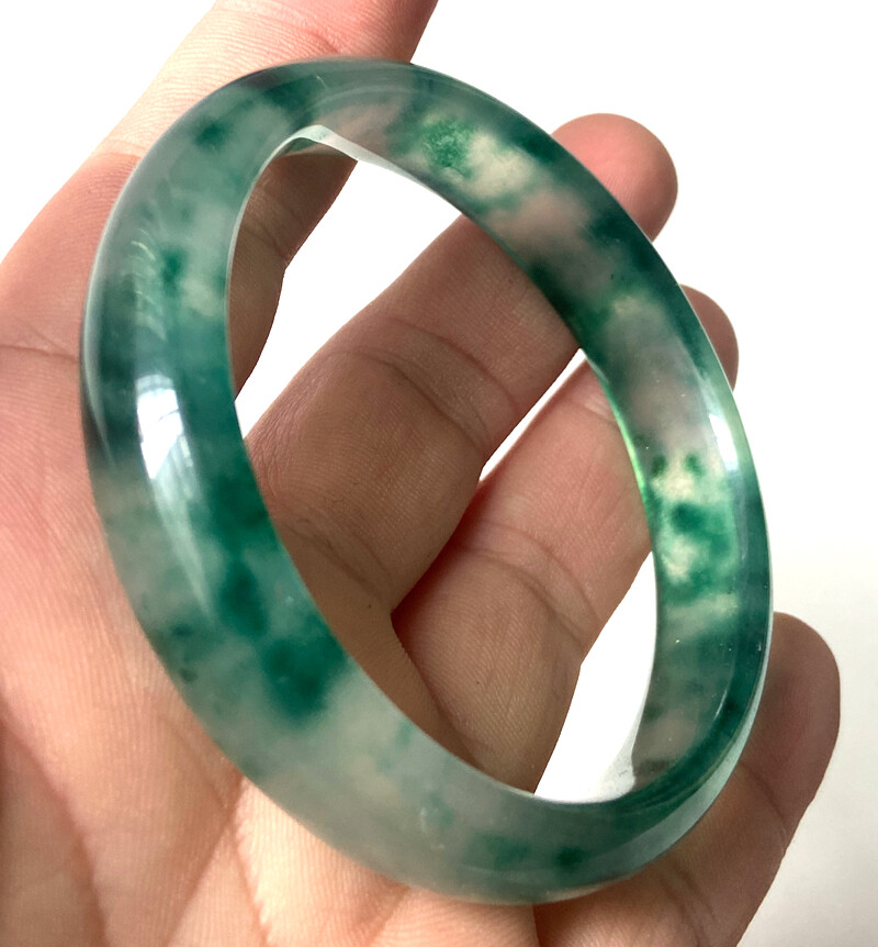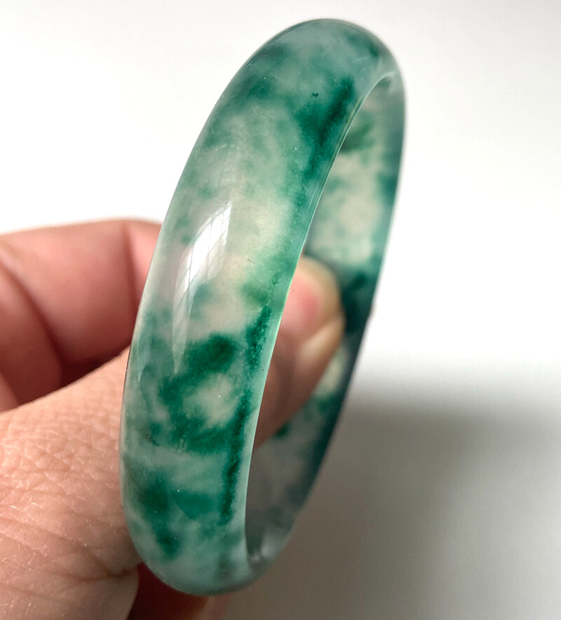 $ 10.5553-66mm Natural white Floating flowers Green Jade jadeite Bangle Bracelet +