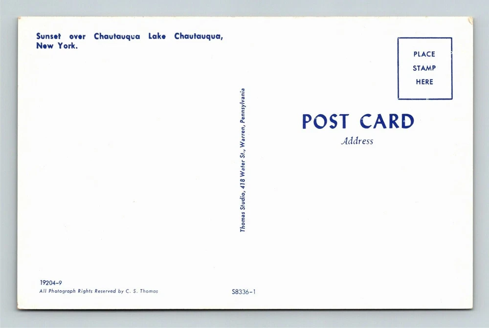 Unit of Sale: Single Unit Country: USA Region: New York Year Manufactured: 1981 Subject: Cities & Towns Theme: Cities & Towns Features: Chrome Postage Condition: Unposted City: Chautauqua Country/Region of Manufacture: United States Type: Printed (Lithograph) Era: Chrome ( c. 1939-present) Original/Licensed Reprint: Original