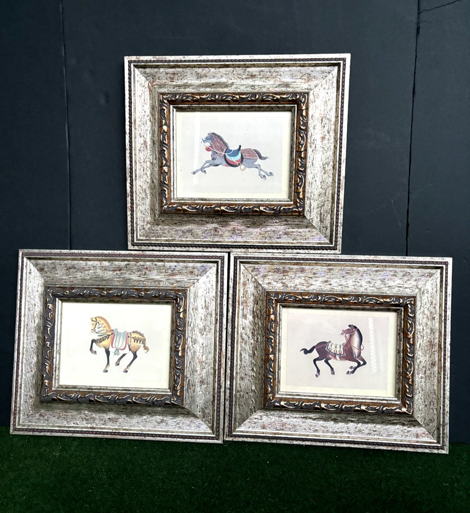 Cheval Dynastic Horses -Set of 3 Framed Prints by The Bombay Co Mint Condition❤️
