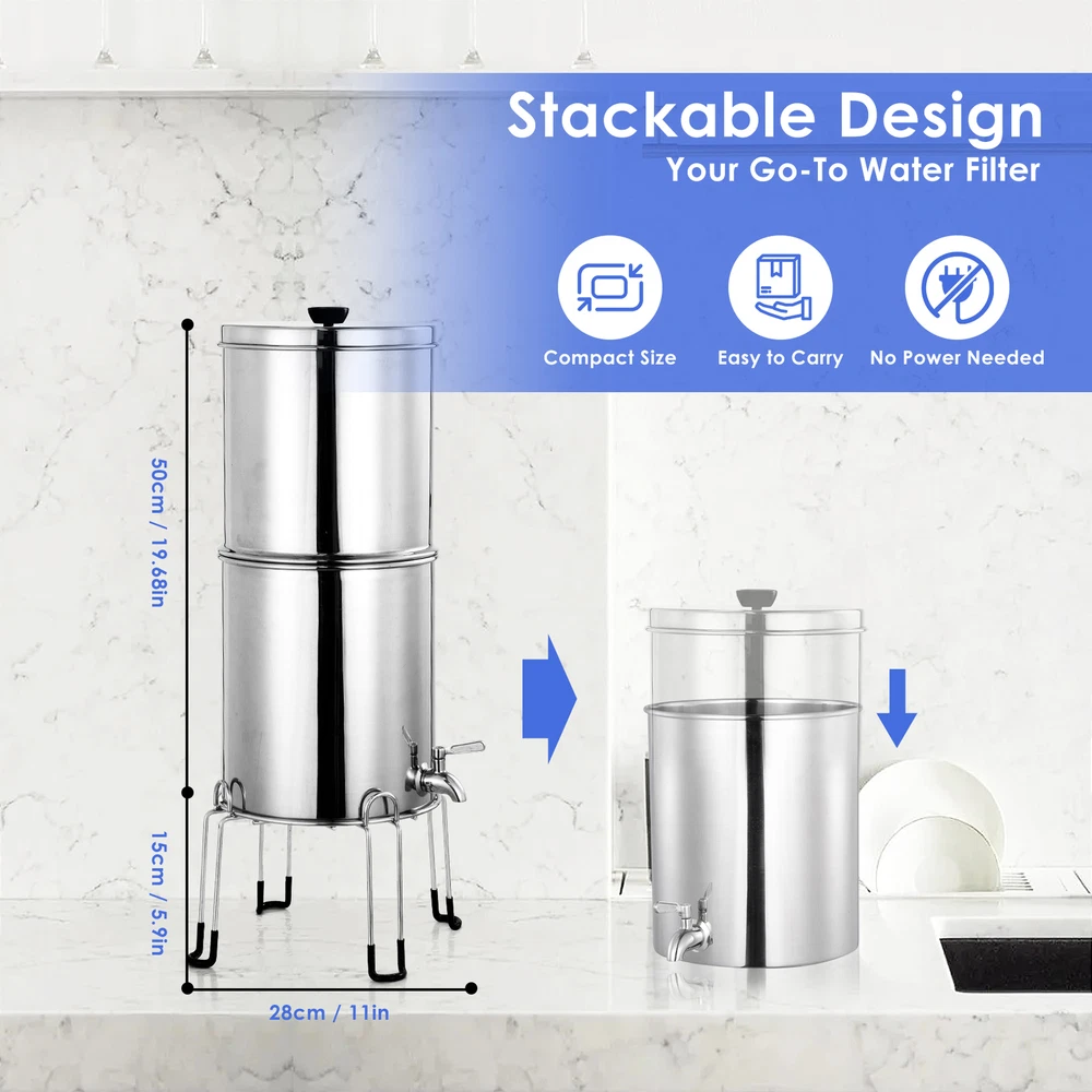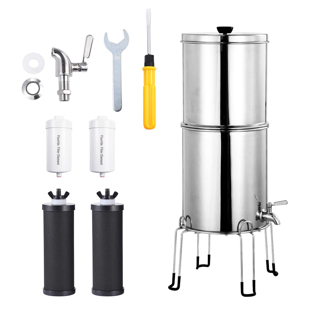 Chlorine and Fluorine Water Filter Stainless Steel Drinking Water Filter Bullet Points: Cutting-Edge Filtration: With our innovative 8-stage Filtration and composite filtration technology, our Water Filter System reduces most pollutants, as well as rust, sediment, organic matter, and heavy metals, while intercepting harmful fluorine and chlorine for cleaner, healthier water. Fluorine Reduction: This Water Filter System features advanced fluorine removal material, and eliminates up to 90% of fluorine, ensuring water safety with no harm to human health. Seamless Setup: Equipped with a comprehensive accessory kit, the water filtering system boasts a sturdy build and food-grade stainless steel exterior for a secure and non-slip installation. Enjoy an effortless setup complemented by a water tap, ensuring optimal user convenience and satisfaction. Energy Saving: Save energy while delightful purified water both indoors and outdoors with this water filter system. No electricity is needed. Fill the upper container with tap water and the lower container provides clean water. Perfect for outdoors. Ensure Hydration Quality: Our water filter system uses advanced filtration technology and replaceable filters to provide up to 6,000 gallons of pure water, with 2 white fluorine and 2 black carbon filters. Replacing filters every 6 months ensures optimal performance for all water types. Purify your water with our Water Filter System for Home! Our composite filtration technology and advanced fluorine removal material provide clean water for indoor and outdoor use. Plus, our product comes with rich accessories and replaceable filters for long-term use. Specifications: A: Material: Stainless steel Capacity: 2.25Gallons Applicable temperature: 32°F -90°F Water rate: 4 gallons/hour Filter life: 6000 mph Packing List: 1 *water tank 2* filter element (CB and UF 6000 Gallons) 1* stainless steel faucet 1* stainless steel bottom covered with rubber bracket 2* fluorine filter element B: Material: Stainless steel Capacity: 2.25 Gallons Packing List: 1* water tank 2* filter element (CB and UF 6000 Gallons) 1* stainless steel faucet 1* stainless steel bottom covered with rubber bracket 1.You can make a Credit payment via Paypal.Paypal will let you use MasterCard,Visa to pay. 2.Payment should be completed within 5 days after auction closed, or unpaid dispute will be filed for an closing auction.An unpaid case will be filled after 4 days. ● We strive for 100% customer satisfaction ! ● Positive Feedback is very important to us. ● We hope that you contact us immediately BEFORE you give us neutral or negative feedback, so that we can satisfactorily address your concerns. ● We promise to offer the lowest price and high quality produce. Dear buyers : ● Welcome to my store ! ● Your satisfaction is our top goal,we appreciate your patronizing. ● If you have any questions, please contact us before leave negative or neutral feedback, we will try our best to solve the issue to your satisfaction, thanks ! ● If you are satisfied with our service, please rate the details of the transaction (Detailed Seller Ratings) on eBay. ● Please always talk to us via ebay Message. ● We appreciate your business and look forward to growing our e-Bay sales with satisfied customers.