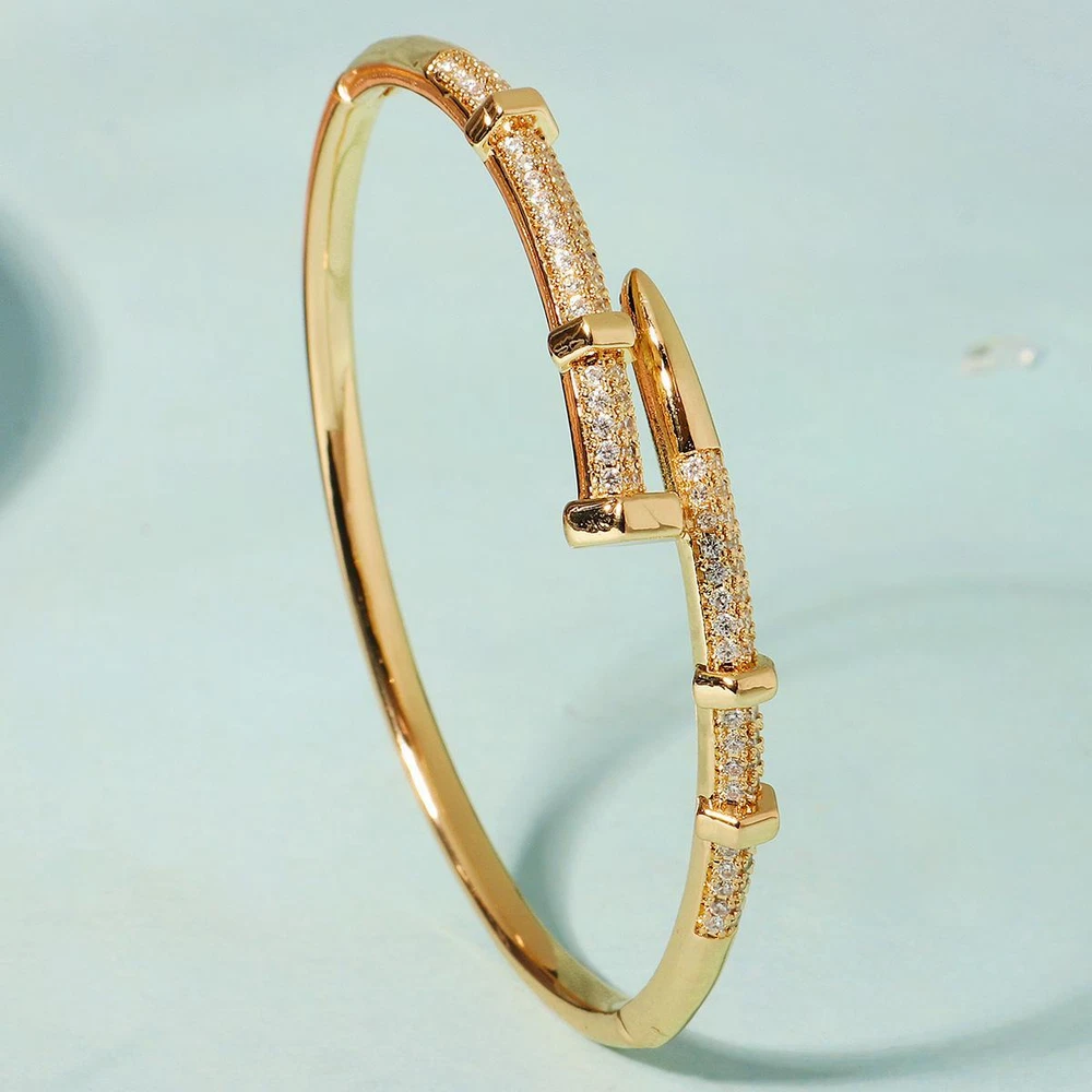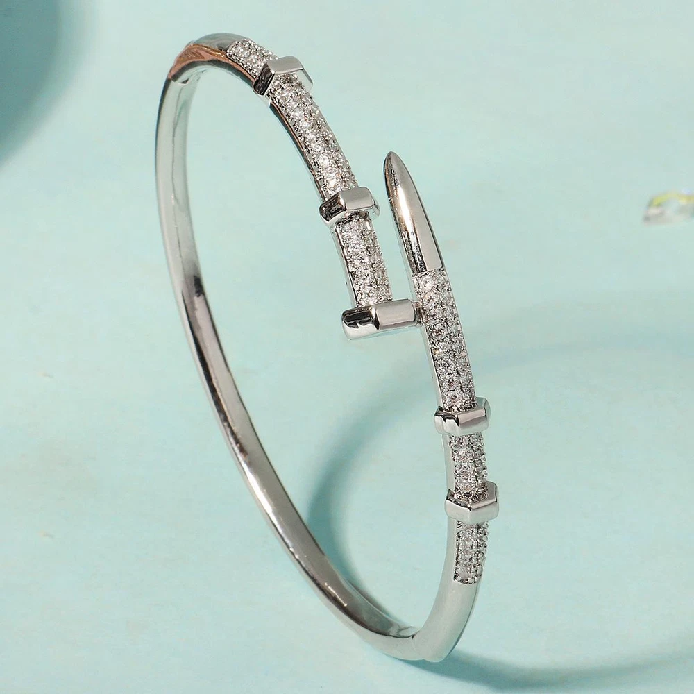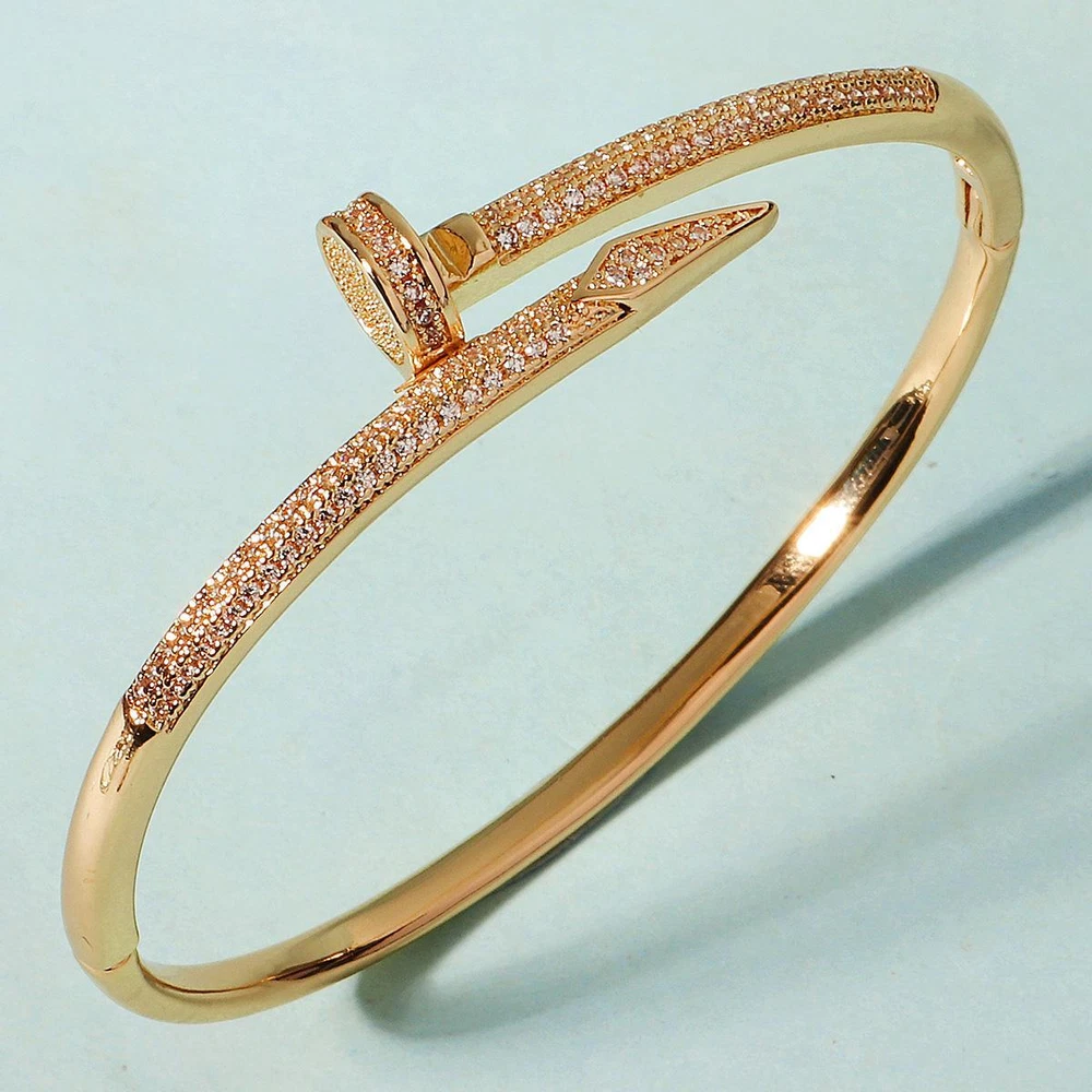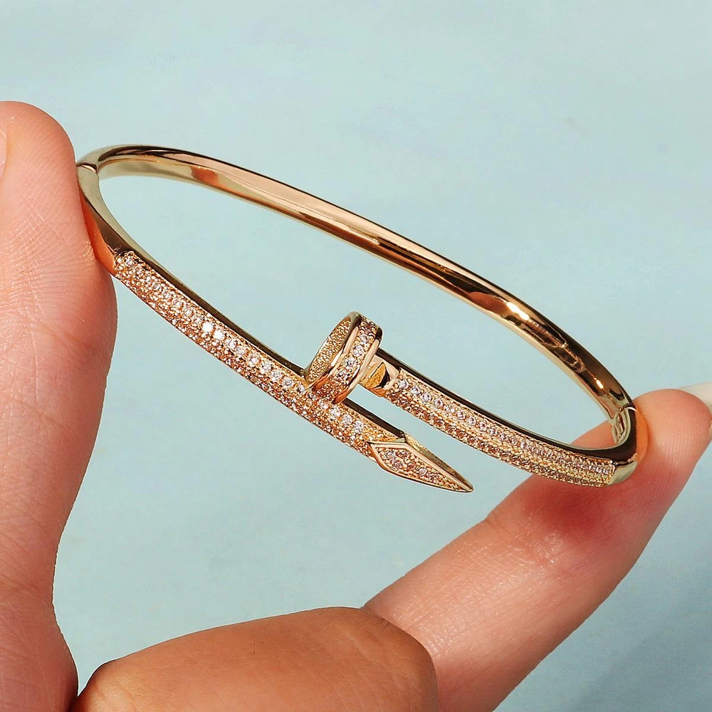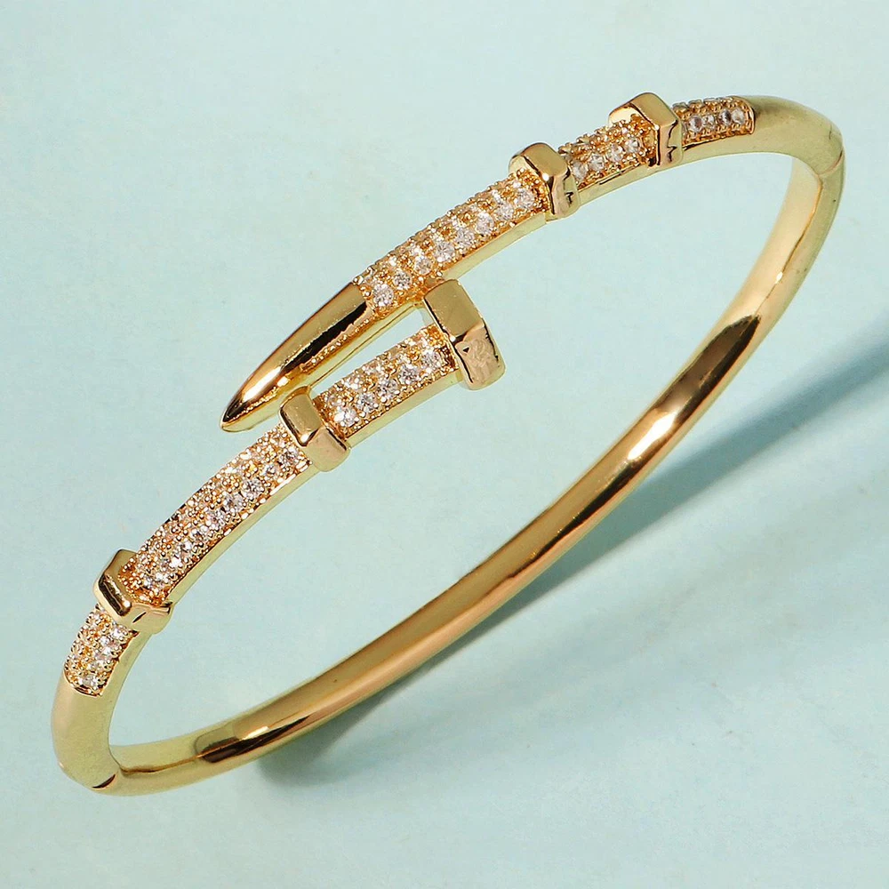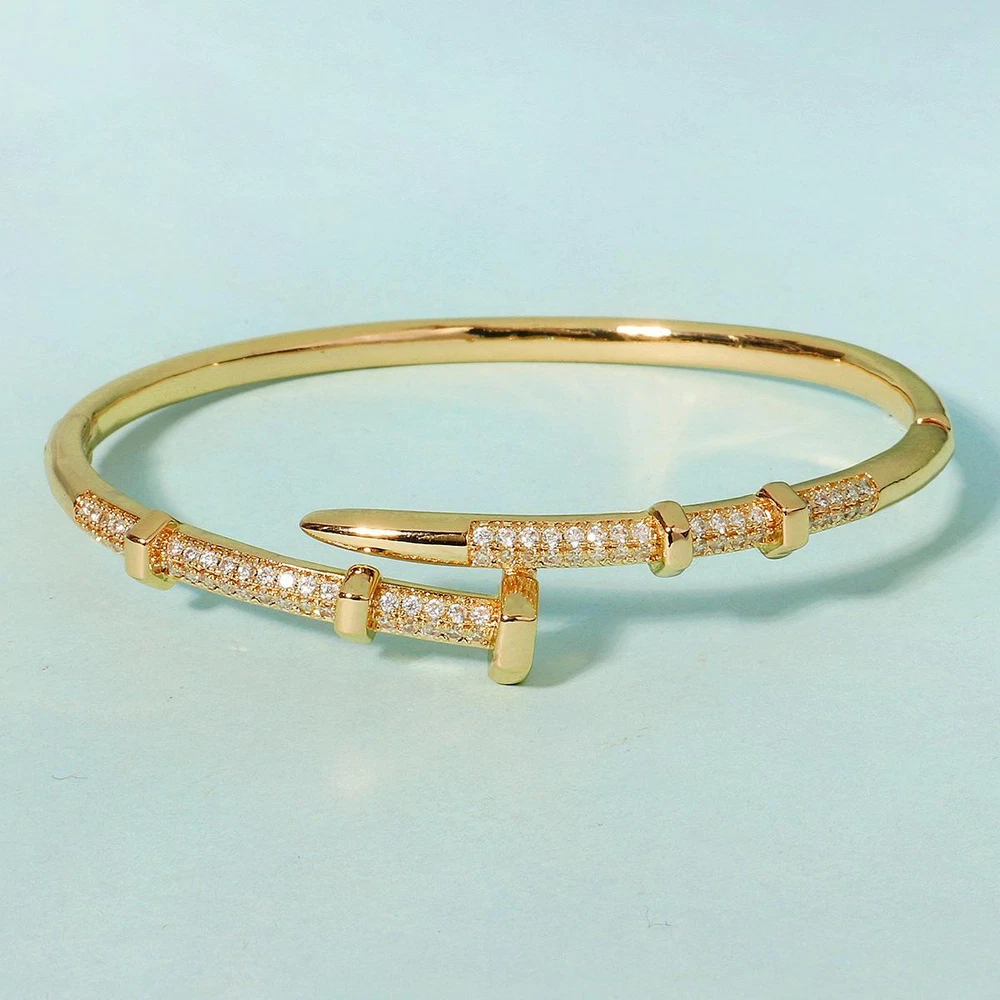 Classic Stainless Steel Nail Bracelet, Sparkling Zircon Bangle, Trendy Gift Gender: Women Material: Copper with Zirconium, Stainless Steel Color : Gold,Sliver Weight: 20 g Packing: Opp bag Season:Spring/Autumn/Winter Occasion: Party/anniversary/wedding/Mother's Day/prom/shopping/Christmas/Valentine's Day/New Year/Halloween/other important occasions Gift: Girlfriend / Wife / Mum / Self / All Women It makes a great gift for important days of the year, such as: weddings, anniversaries, birthdays, parties, Halloween, New Year, etc., or just as a surprise to remind that special someone how much you care about her. Exquisite handmade pieces, wear them to exude your unique temperament! Shipping Fast Shipping Worldwide Returns We accept returns 30 days from the package received. Payments All payments are accepted via PayPal. Thank you for shopping