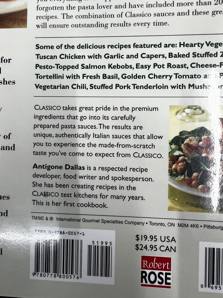 Indulge in the authentic taste of Italian cuisine with The Classico Pasta Sauce Cookbook. Written by Antigone Dallas and published by Rose Incorporated, Robert in 2002, this first edition cookbook offers 192 pages of delicious recipes that make use of authentic Italian pasta sauces. Whether you're young or old, this cookbook is perfect for anyone looking to impress their guests with mouth-watering home-cooked meals. The Classico Pasta Sauce Cookbook is a vintage trade paperback that measures 8 inches in length, 10.5 inches in height, and 0.5 inches in width. It is highly recommended for those who are interested in cooking, cookbooks, food, and drinks, as well as those who love Italian cuisine. This illustrated cookbook is perfect for cooking enthusiasts who want to try new recipes, and it contains a wide variety of dishes categorized into different topics such as National Cooking, Cooking by Ingredient, Methods/Quick & Easy, and Regional & Ethnic/Italian.
