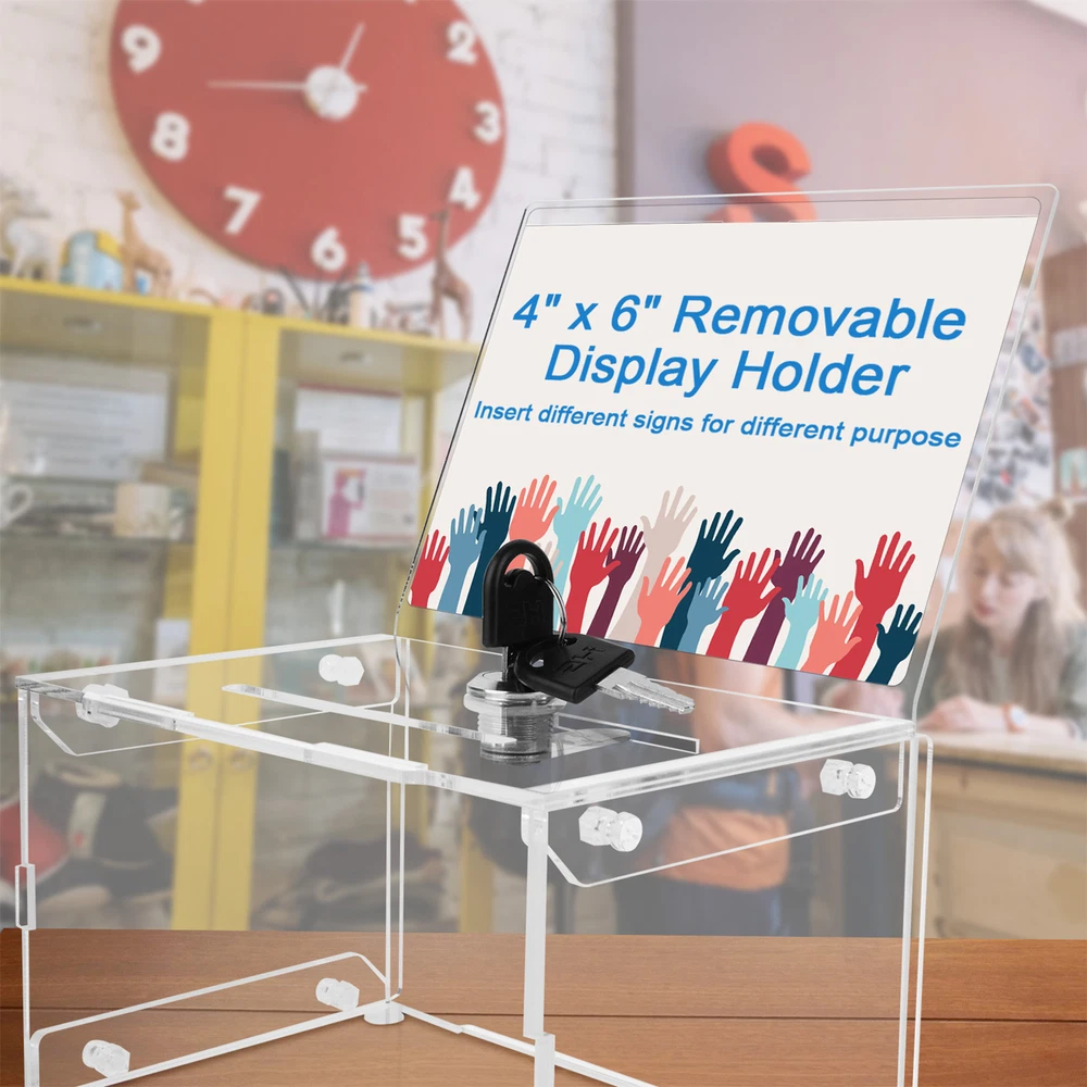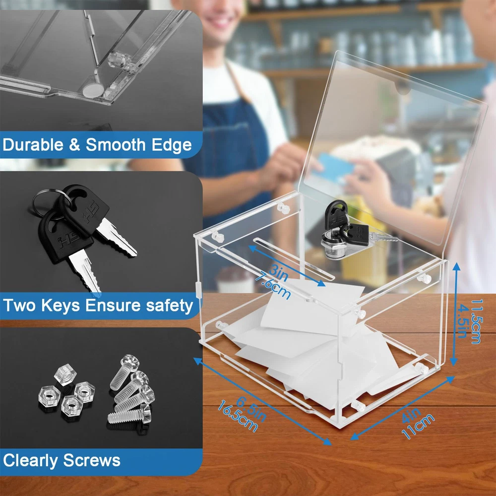 Clear Acrylic Donation Box Ballot Box Charity Box With Lock And Keys Bullet Points: Easy Operation: Empower your cause with the acrylic donation box featuring a convenient sign holder. Seamlessly mark relevant activity info and enhance event theme awareness. Clear Visibility: Our transparent acrylic donation box boasts a crystal-clear design that allows for unobstructed visibility, ensuring absolute transparency throughout the donation process. Ensure Donation Privacy: Safeguard the confidentiality of donations with a sturdy lock and two keys on this transparent acrylic donation box, allowing for secure contributions. Reliable Strength: Our donation box is made of thick, scratch-resistant, and wear-resistant acrylic material, guaranteeing unsurpassed resilience. The box is also lightweight, making it effortless to gather funds for your cause while maintaining transparency and durability. Multi-functional Uses: Elevate your tips collection game with our acrylic donation box. Perfect for classroom voting, ticket raffles, tips collection at cafes, storing business cards, and much more. This Acrylic Donation Box comes with a Sign Holder and provides complete visibility to display your message. Made with thickened acrylic material to ensure the confidentiality of information. Perfect for charities, churches, schools, and events. Specifications: Name: Acrylic Ballot Box Color: Transparent Product size: After assembly: about 16.5*11.5*11cm/6.5*4.5*4.3inch Packing List: 1pc * Acrylic Suggestion Box Notes: 1. Due to the lighting effects and photographing angles, there is a color difference in the product, please understand. 2. Due to manual measurement, there is a tolerance in the product size. 1.You can make a Credit payment via Paypal.Paypal will let you use MasterCard,Visa to pay. 2.Payment should be completed within 5 days after auction closed, or unpaid dispute will be filed for an closing auction.An unpaid case will be filled after 4 days. ● We strive for 100% customer satisfaction ! ● Positive Feedback is very important to us. ● We hope that you contact us immediately BEFORE you give us neutral or negative feedback, so that we can satisfactorily address your concerns. ● We promise to offer the lowest price and high quality produce. Dear buyers : ● Welcome to my store ! ● Your satisfaction is our top goal,we appreciate your patronizing. ● If you have any questions, please contact us before leave negative or neutral feedback, we will try our best to solve the issue to your satisfaction, thanks ! ● If you are satisfied with our service, please rate the details of the transaction (Detailed Seller Ratings) on eBay. ● Please always talk to us via ebay Message. ● We appreciate your business and look forward to growing our e-Bay sales with satisfied customers.