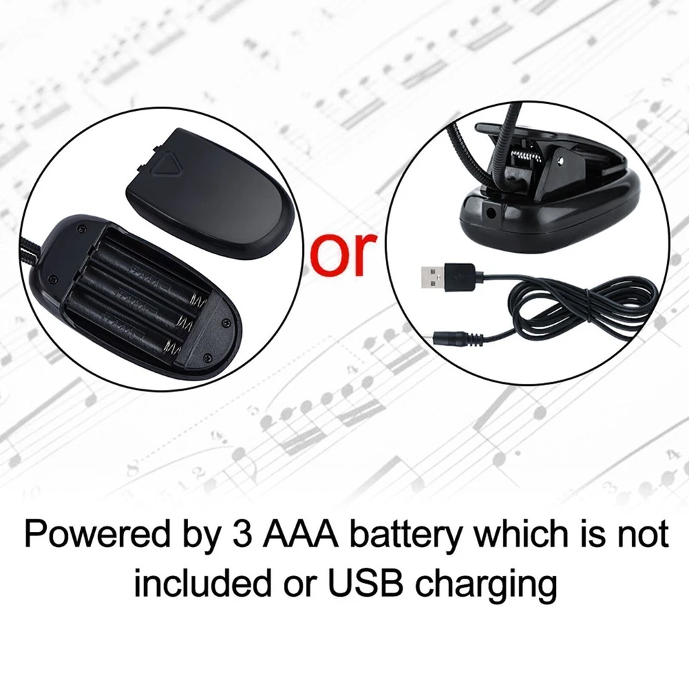 Features: Made of qualified plastic and electron, lightweight and portable, solid, firm and durable to use. Double adjustable arm, you can bend it to any angle according to your own needs. Convenient for music stand, night reading, and maintenance work. Clip on base stand, mini in size and easy to carry, you can clip it on table, bracket, and anywhere handy. Powered by 3 AAA battery which is not included or USB charging, provides a high brightness. 6 beads or 8 beads for choosing, great accessory for music stand, night reading and other use. Specifications: Condition: 100% Brand New and High Quality Material: Plastic + Electron Color: Black Power Supply: 3 x AAA Battery ( not included ) Total Length: Approx. 29cm / 11.4inch Lighting Source: LED Button: Push Button Voltage: Less than 36V Options: 6 Beads, 8 Beads Weight: Approx. 105-108g Package Included: 1 x Clip On Light 1 x USB Cable All the items will be dispatched within one business day by Airmail after the payment is clear. Most times you will receive your order within 10-30 business days after we transfer your package to the delivery company. We cannot guarantee the delivery timeframe if the post office has any unexpected delays due to holiday,weather,customs, or other conditions. Some countries like Russia, Brazil, or some European countries may take up to 50 days or longer for delivery. We appreciate your patience if you haven't received items in 30 days(Russian customers may need more patience by reason of the local delivery system and/or customs). If you are concerned in any way, please feel free to contact us via ebay message instead of leaving negative/neutral feedback or opening a dispute . We will do our best to solve any problem(resend or refund any missingitem). Customs duty is obligation and liability of citizens in yourresponsible for any tax and custom duty incurred. Generally, thedelay or failure delivery is sometimes caused by the policy of different customs. Our listing price includes the value of goods,packaging cost,and export taxes,not including international duties. duties,taxes,and charges are not included in the item price or shipping fee. The duties are buyers' responsibility. Please check with your country's customs office determine what these additional costs will be prior to your purchase. All disputes arising from the duties will be submitted to ebay for solution. Any questions, pls. contact us via ebay message or email us. We will reply your message within 48 hours. If you do not receive our reply within 48 hours, pls. post a message again because sometimes our message system may block some emails. If you are satisfied with our service, pls. kindly leave us a positive feedback and give us the Detailed Seller Rating with all " 5 " in very area. Our aim is to provide Level Customer Service, your recognition will encourage us greatly and serve you better. We strive to keep all our customers satisfy. We will do our up most to exceed your expectations in customer service, communication and dispatching of your orders.