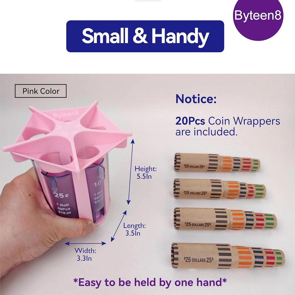 Store New Arrivals Add to Favorite View Feedback Contact Coin Roller Coin Counter Tube Coin Sorter with Coin Wrappers, Change Sorter Description Item model number Byteen8-Pinky Color Pink Color Brand Byteen8 Manufacturer Part Number Byteen8-Pinky Item Weight 9.9 ounces Package Dimensions 5.39 x 4.8 x 4.53 inches Manufacturer Byteen8 专利产品,6月起侵权必究!1. Pink Color Coin Sorter Tube: This lovely pink Coin Counters & Coin Sorters Tube includes U.S Pennies, Nickels, Dimes, Quarters and Dollars. No More Separated 5 Coin Tubes like others. Much easier to use & store! 2. Accurate & Easy to Check: Our Byteen8 Change Sorter you can easily to check its accuracy. As each Coin Tube is Exactly One Roll. Super Easy to Sort & Roll your Loose Change at Home & Office. 3. Easy to Match: Byteen8 Change Counter is easy to match used as a coin counter machine. No matter you are adult or a kids, you will find it’s super easy to use. Quickly empty your Pocket Change & Coin Pouch Coin Purse. 4. Clear Printing + Transparent Tube: Byteen8 Coin Tube is clear to see the coin type, value and quantity on the coin tubes. Much easier to use as the change sorting tube. 5. Save a lot of Time for you: Byteen8 Coin Organizer can make sorting your loose change much easier. No More Counting & accurate. It makes Counting & Rolling Coins much easier. Can save a lot of time for you at Home & Office. Product description Notice: It's a patented product designed by Byteen8. 专利证书已下,6月起侵权必告 ! Coin Roller & Change Counting Tube One Tube = One Roll, which means there will be no more counting for you. Easy to use & Accurate. Can empty your coin purse & Coin Pouch quickly! Accurate & Easy to Check There are two ways to check its accuracy: 1. Just tilt a little to slide off the excess coins. Very easy! 2. Or you just need to check there are no excess coin on the top. Clear Printing + Transparent Tubes From the top printing, you can clear see the coin type. From the tube printing, you can easily find the coin type first. then the coin roll, coin amount and coin value. Super easy for you to match the tube. Notice: It's the manual coin sorter tube not automatic coin sorter! Tips & Notice According to this easy-to-follow instruction, you can find how to insert the coin wrapper over the coins in details. More colorful options There will be more colorful options on the way. Soon you will find the favorable one. Very simple but effective design. Which makes counting & rolling coins much easier. ABOUT US We offer the best prices around on high quality products. Our E-store includes media such as books, movies, music and games while offering electronics, toys, sporting apparel, clothing, tools, general home, garden items and more. SHIPPING We are always working hard to ensure your package arrives as soon as possible. Please understand that some factors like weather, high postal traffic, and the performance of shipping companies are outside of our control. We offer free shipping to the lower 48 states and ship within 2 business days of payment, usually sooner. We do not accept P.O. Boxes. Please provide a physical address. RETURNS We offer a 30-Day Return Policy on items which you are not completely satisfied with. You have the option for a full-refund or an exchange of the item. No returns are available on items shipped outside of the USA. PAYMENT We accept PayPal. CONTACT US This page content is yet to come Please ad us to your favorite seller and visit again later Thank You CUSTOMER SATISFACTION We try our very best to make sure every customer is completely satisfied. If there's a problem, message us! We're happy to help.