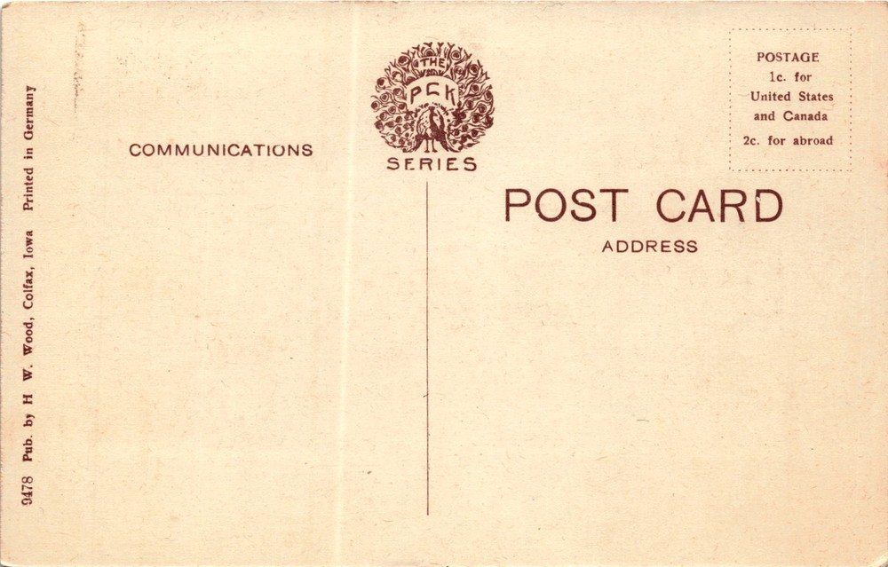 MAKE AN OFFER. THE MORE YOU BUY THE BETTER DEAL I WILL ACCEPT The postcard is from Colfax, Iowa, featuring an image of the Skunk River. The postcard was published by H.W. Wood in Colfax and printed in Germany. It includes instructions for postage rates for communications, specifying 1 cent for the United States and Canada, and 2 cents for abroad.