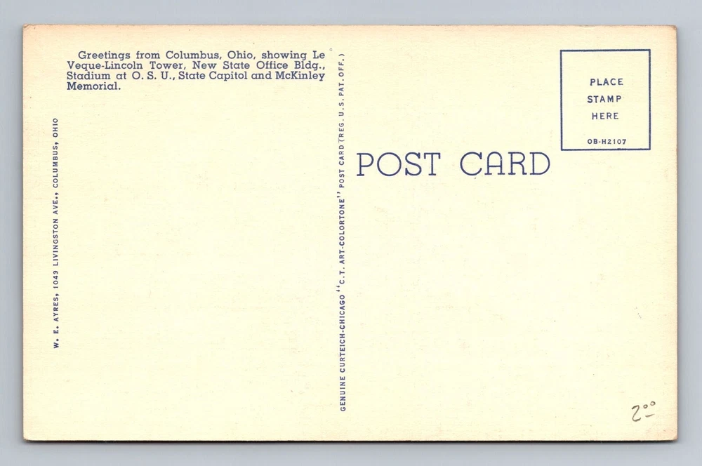 Country/Region of Manufacture: Unknown Unit of Sale: Single Unit Type: Printed (Lithograph) Country: USA Postage Condition: Unposted Subject: Cities & Towns Region: Ohio Theme: Cities & Towns Original/Licensed Reprint: Original City: Columbus Era: Vintage