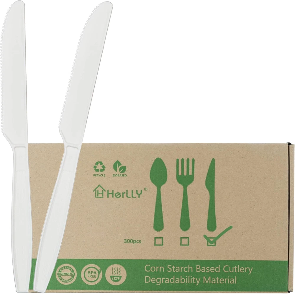 Product Description disposable tableware our disposable knives are made of corn starch, plastic-free, tree-free, a great alternative to plastic, wood, or bamboo knives. our DOSSINI silverware is truly friendly to the environment High heat resistance Disposable tableware have excellent heat insulation effect, and the heat resistance temperature can reach 120℃. There is no need to worry about damages caused by high temperature. Set includes 100 piece.The simple appearance is in harmony with any scene. You can use these disposable knives for any food and any occasion