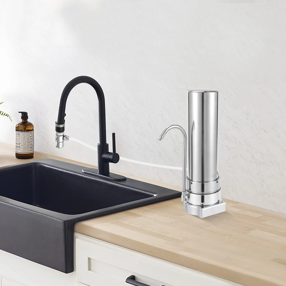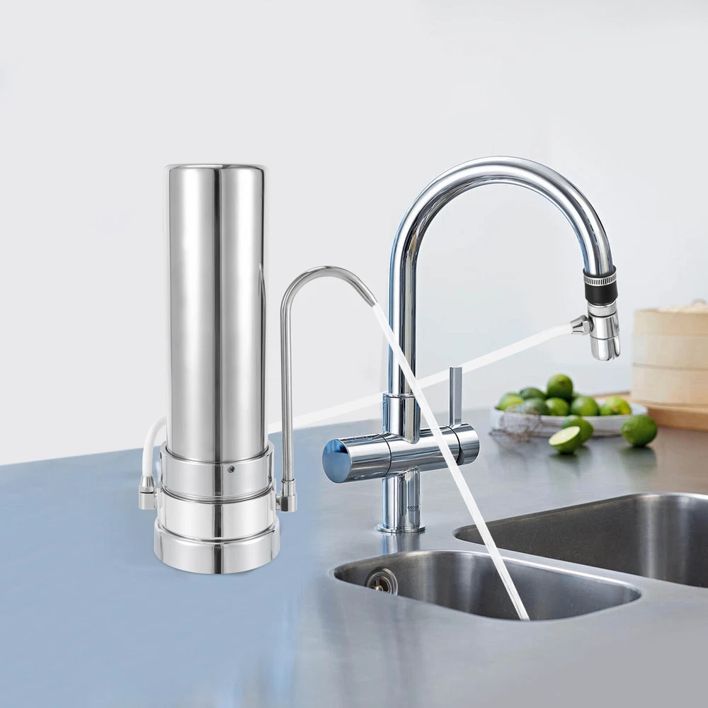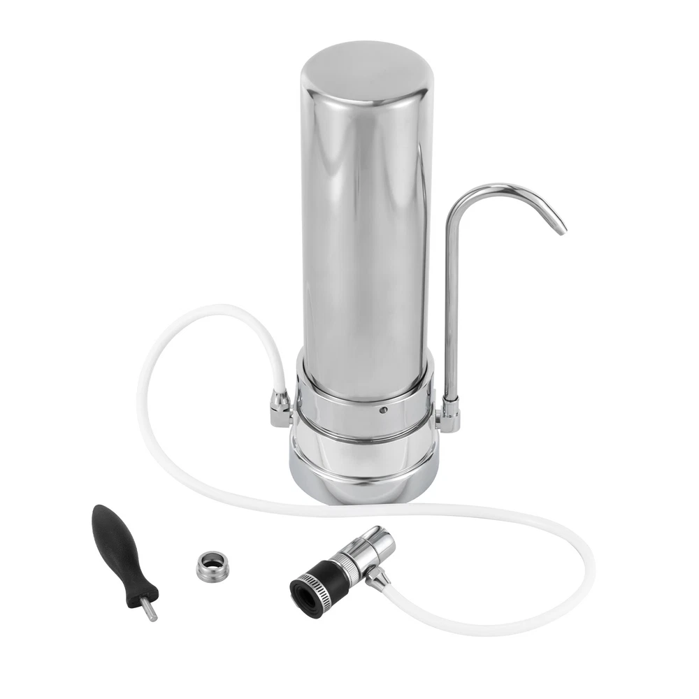 Countertop Filtration System, 304 Food-Grade Stainless Steel Description This Is Is a Highly Efficient Countertop Filter System That Can Effectively Remove Impurities and Odors from Water, Making the Water Fresh and Healthy. the Product Is Made of 304 Stainless Steel, Strong and Durable, Not Easy to Rust and Corrosion, Long Service Life. Simple Operation, Easy Installation, Compact Size, Does Not Occupy Space. It Is Not Only Suitable for Home Use but Also Can Be Applied to Enterprises, Schools, and Other Public Places to Provide People with More Pure Drinking Water. Key Features Efficient Filtration: the Countertop Filter System Is Designed with an Internal Pp Cotton Filter Layer with a Filtration Precision of 5 Microns, Which Can Effectively Filter Sediment, Rust, Hair, and Other Particulate Matter in the Water. Safe and Health: the Countertop Filter System Is Made of Lead-free 304 Stainless Steel, the Filtered Water Is Healthier and You Can Drink It with Confidence. Durable and Sturdy: It Is Made of High-quality 304 Stainless Steel, Which Is Strong and Durable and Not Easy to Rust and Corrode. in Addition, Its Plastic-plated Base Can Effectively Ensure a Longer Service Life. Small and Lightweight: This Countertop Filter System Measures Only 13.39*5.12*4.33 Inches and Weighs 2.2 Pounds. the Compact Size Does Not Take up Sink Space and Is Easy to Carry. Easy to Install: with Its Simple Structure and User-friendly Design, It Can Be Easily Hung on the Cabinet Wall or Even Placed Directly on the Floor, Making It Ideal for Users Who Do Not Want to Drill Holes in Their Cabinets. It Is Easy to Install and Remove and Can Accommodate a Variety of Faucet Models. Easy Maintenance: It Can Be Disassembled and Cleaned for Easy Maintenance. Also, Once the Filter Expires, You Can Simply Replace the Cartridge Inside Without Replacing Its Stainless Steel Housing. Energy Saving and Environmental Friendly: It Can Be Used Without Power and Does Not Produce Wastewater. Not Only Will It save You Money, but It Is a Responsible Alternative to Eliminating Millions of Plastic Water Bottles. Rotatable Spout: It Has a Rotatable Spout Design, Which Is Convenient for Taking Water in a Larger Space and Brings Unparalleled Convenience to Your Life. Customer Service: Your Satisfaction Is Our Top Priority and We Will Solve Your Problem. If You Are Not Satisfied with Our Products, You Can Contact Us and We Will Make Sure You Have a Pleasant Shopping Experience in Our Store. Details Smooth Surface: This Stainless Steel Countertop Filter System Has a Smooth Surface and Rounded Edges, Together with a Smooth Handle, Giving You a Comfortable Feel. 10-Inch Cartridge: It Has a 10-Inch Cartridge, Which Can Effectively Filter the Sediment, Moss, Hair and Other Impurities in the Water, Providing You with Safe and Healthy Water. Application It Is Suitable for Tap Water Filtration in Many Scenarios Such As Home and Office. Specification Material: 304 Stainless Steel, Plastic, Pp Color: Silver Filtration Precision: 5μm Cartridge Diameter: 25.4 Cm/10 Inches Water Flow: 0.8l/Min /0.211gpm Applicable Water Temperature: 4-38℃ Water Pressure: 0.1~0.4mpa Bottom Diameter:13cm/5.12in Top Diameter: 11cm/4.33in Height: 34cm/13.39in Package Size: 14*14*34cm/5.5*5.5*13.4 Inch Net Weight: 1kg/2.2 Lb Gross Weight: 1.5kg/3.3 Lb Package Included 1* Countertop Filter System All Accessories for Use Notes Please Clean the Inside of the Faucet Before Installation. It Is Recommended to Replace Every 8-12 Months,the Exact Time Depending on the Local Water Quality. Please Allow the Slight Color Difference Caused by the Shooting Light and the 1-3 Cm Error Due to Manual Measurement, and Make Sure You Do Not Mind Before Ordering. Payment Delivery details Terms of sales About us Contact us Payment We accept ebay payment 。 Fees such as import duties, taxes are not included in the item price or shipping costs. These charges are the buyer's responsibility. Delivery details Shipping: 2-9 working days to: USA Terms of sales We maintain high standards of excellence and strive for hundred percent customer satisfaction. Feedback is very important to us. We hope that you contact us immediately before you give neutral or negative feedback, so that we can address your concerns. It is impossible to address issues if we do not know about them! About us Your satis faction is our ultimate goal. We work hard to earn your trust and future business. Our certified technicians have tested each item before shipping. The unit comes with 1 year limited warranty on all manufacturing defects. a) If you receive a defective item, you may return it or ask for a discount. Please contact us within 14 days after you receive the package. b) What you returned must be intact and in its original packaging as re? u. Customer is responsible for shipping costs of the returned item. c) We will cover the cost of shipping back t with the shipping rate indicated in the registration page. We will send you a new unit or refund the full payment you paid. Thank you. Contact us Business Hour Business Hour: Monday To Friday: 8:30 AM to 5:00 PM (Beijing China time) Due to time zones, our reply to your questions may not be immediately. But within above working time, we will reply your email within 24 hours. If it's non-workdays, please kindly be patient and wait till Monday. Please contact us with ebay message. Please feel free to contact us if you have any questions. Monday To Friday: 8:30 AM to 5:00 PM (Beijing China time) Due to time zones, our reply to your questions may not be immediately. But within above working time, we will reply your email within 24 hours. If it's non-workdays, please kindly be patient and wait till Monday. Please contact us with ebay message. Please feel free to contact us if you have any questions.