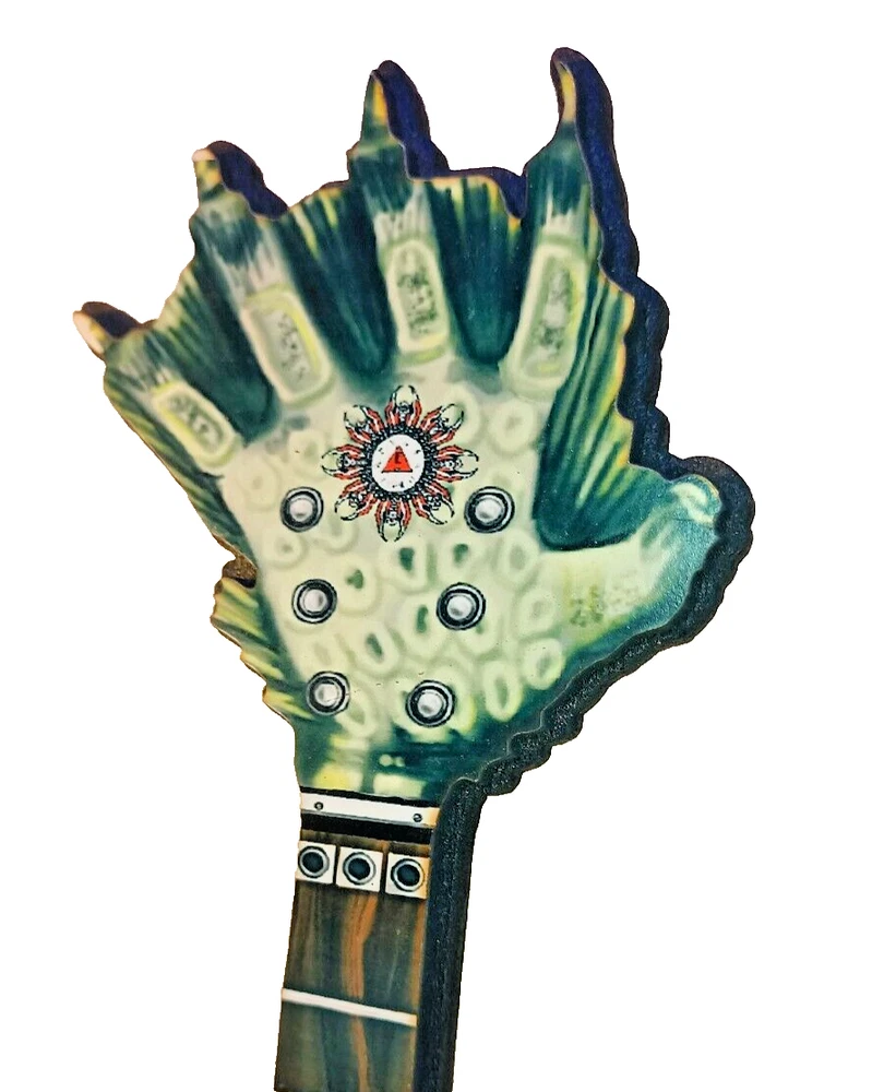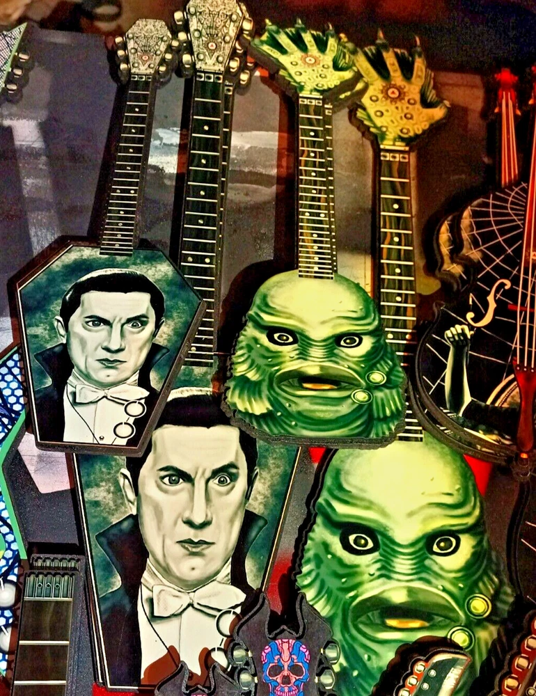 ***Treasure Suite offers you many pieces of my art prints now*** ###This section is for large sized laser cut art guitars,cellos,etc. Approximate measurements are 17"hx6"wx.25"d. ### Perfect for that classic horror movie fan in your life. Buy for yourself and makemsaid friends envious. Then send them my way. Please check out my other classic horror art guitars to complete your collector's set. Welcome to my unique collection of digital art, where creativity meets craftsmanship! Each piece in this category features my original designs, heat pressed into vibrant sublimation prints on laser cut wood or polyester canvas material. These art pieces are not just decorations, they are collectibles that bring a touch of gothic, rock and roll, horror, pin-up, and lowbrow art into your space. Explore an array of striking designs on my mini guitars to other stringed instrument laser cut art pieces, available in 2 sizes and complete with custom laser cut foldable stands that I personally designed. These pieces are perfect for adding a distinctive edge to your home or office, and they make fantastic gifts for art enthusiasts and collectors alike. Looking for something truly one-of-a-kind? I may accept custom orders to bring your unique vision to life. Dive into a world of bold, expressive art that stands out and speaks to the rebel in all of us!