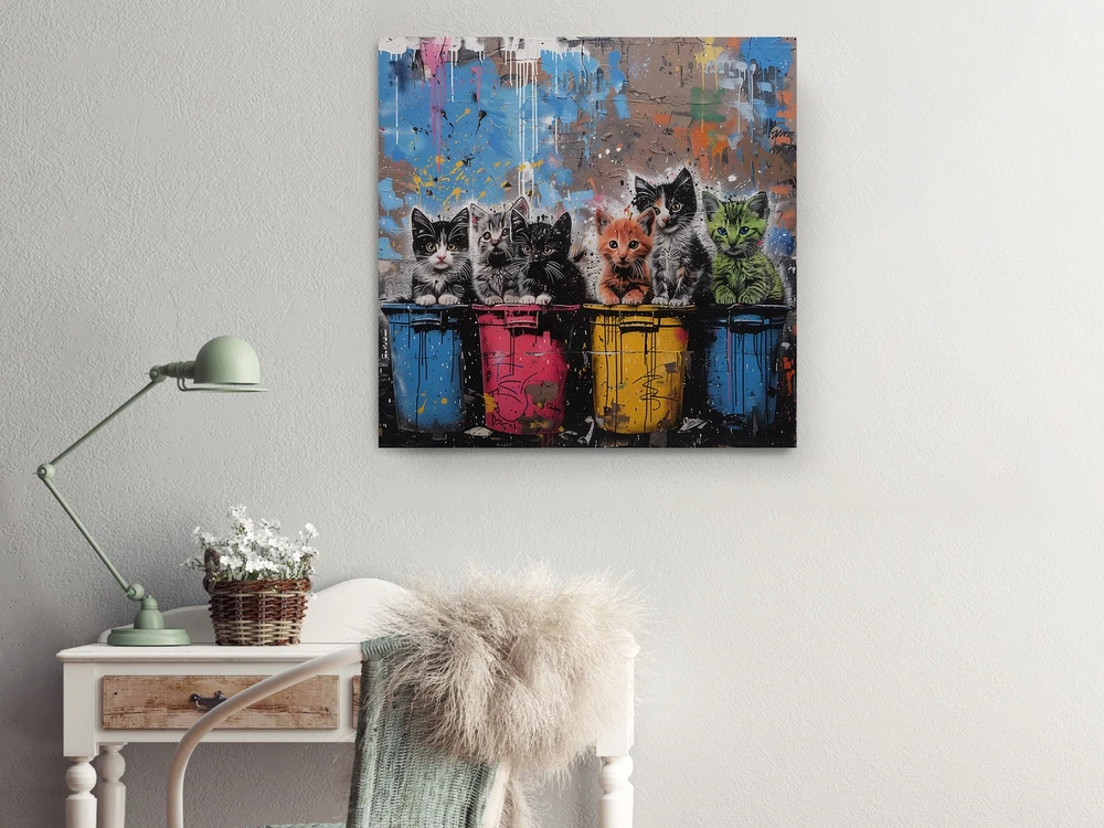 Cute Kittens Street Art Graffiti Grunge by Banksy on Canvas Print - Home Decor