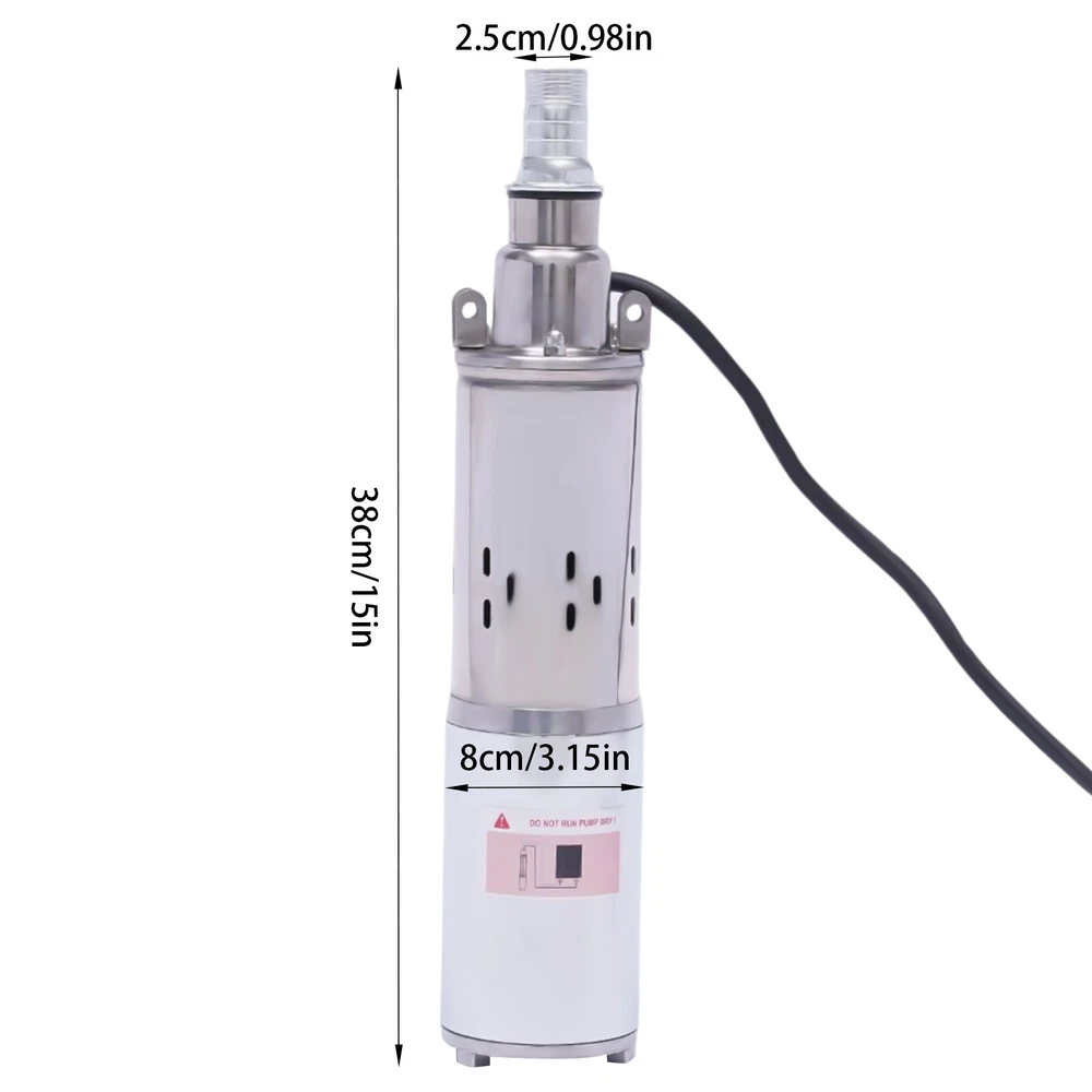 DC 12V Solar Powered Water Pump Submersible Bore Hole Deep Well Farm & Ranch DC Features - Pure Copper Motor - Cast Steel Chassis - Safety Insulation - Strong Power - Dc Diving - Good Mute Effect - Screw Pump: more powerful, fast speed, effectively increase the head flow - This Is a Non-toxic, Non-polluting, Noiseless Solar Water Pump - Suitable for Using in Ships, Fishing Boats, Fish Ponds, Agricultural Irrigation and Etc. - It Uses Car Power, Energy Saving and Environmental Protection. - High Lift, Large Flow, Small Size, Easy to Carry. Specifications 1. Power:180w 2. Voltage:12v Dc 3. Max Flow:1.2m³/H 4. Max Lift:20m/ 65ft (The Highest Llift,The Lowest Flow Rate) 5. Outlet:20m/ 65ft 6. Pump Diameter:8cm/3.15in 7. Pump Length:38cm/15in 8. Material: Stainless Steel (Shell) + Iron (Screws) Package Included: 1 X Water Pump Note: The normal use conditions of this pump: 1. Voltage is matched. 2. The positive and negative poles are connected correctly. If the pump does not work, Please check the following two points : (1) Whether the electricity is sufficient. (2) Whether the positive and negative poles are connected in right way,or the screw is loose. Note: Solar Panel Not Included Payment Delivery details Terms of sales About us Contact us Payment We accept ebay payment 。 Fees such as import duties, taxes are not included in the item price or shipping costs. These charges are the buyer's responsibility. Delivery details Shipping: 2-9 working days to: USA Terms of sales We maintain high standards of excellence and strive for hundred percent customer satisfaction. Feedback is very important to us. We hope that you contact us immediately before you give neutral or negative feedback, so that we can address your concerns. It is impossible to address issues if we do not know about them! About us Your satis faction is our ultimate goal. We work hard to earn your trust and future business. Our certified technicians have tested each item before shipping. The unit comes with 1 year limited warranty on all manufacturing defects. a) If you receive a defective item, you may return it or ask for a discount. Please contact us within 14 days after you receive the package. b) What you returned must be intact and in its original packaging as re? u. Customer is responsible for shipping costs of the returned item. c) We will cover the cost of shipping back t with the shipping rate indicated in the registration page. We will send you a new unit or refund the full payment you paid. Thank you. Contact us Business Hour Business Hour: Monday To Friday: 8:30 AM to 5:00 PM (Beijing China time) Due to time zones, our reply to your questions may not be immediately. But within above working time, we will reply your email within 24 hours. If it's non-workdays, please kindly be patient and wait till Monday. Please contact us with ebay message. Please feel free to contact us if you have any questions. Monday To Friday: 8:30 AM to 5:00 PM (Beijing China time) Due to time zones, our reply to your questions may not be immediately. But within above working time, we will reply your email within 24 hours. If it's non-workdays, please kindly be patient and wait till Monday. Please contact us with ebay message. Please feel free to contact us if you have any questions.