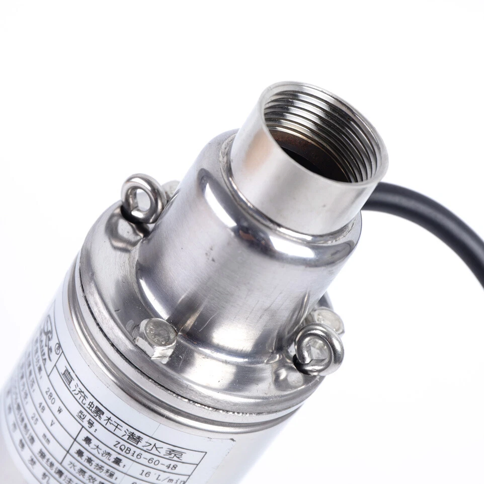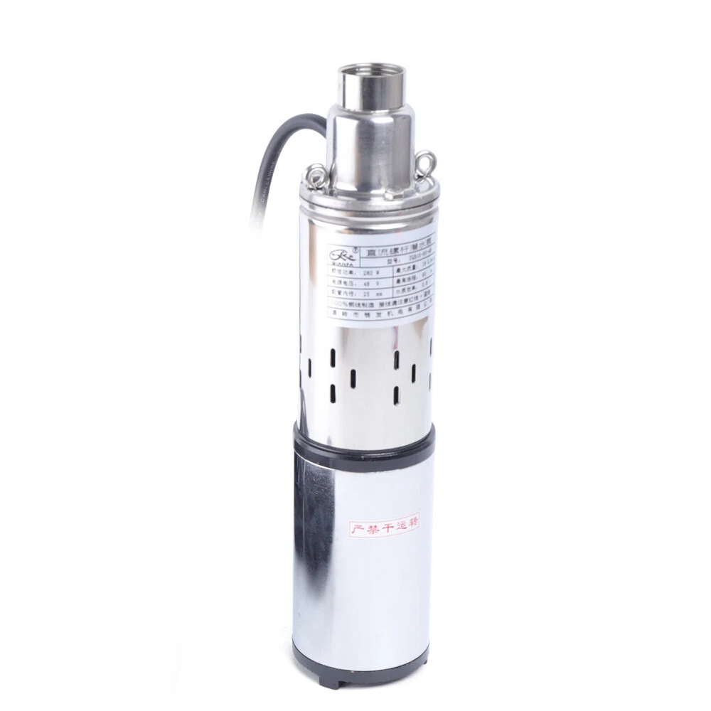 DC48V Solar Water Pump Submersible Bore Deep Well Irrigation Screw Pump 16 L/Min Description: 48V Solar Powered Water Pump Farm Ranch Submersible Bore Hole Deep Well DC 280W 16 L/Min Features - Pure Copper Motor - Safety Insulation - Strong Power - Dc Diving - Good Mute Effect - Screw Pump:With carbon brush, more powerful, fast speed, effectively increase the head flow. - This Is a Non-toxic, Non-polluting, Noiseless Solar Water Pump - Easy to install. It can be directly connected to solar panel. - Suitable for Using in Ships, Fishing Boats, Fish Ponds, Agricultural Irrigation and Etc. - It Uses Car Power, Energy Saving and Environmental Protection. - High Lift, Large Flow, Small Size, Easy to Carry. Specifications: 48v: 1. Power:280w 2. Voltage:48v Dc 3. Max Flow:16L/Min 4. Max Lift:60m (the highest lift,the lowest flow rate) 5. Outlet:30mm 6. Material: Stainless Steel + Cast Iron Weights&Dimensions: 6. Pump Diameter:8cm/3.1in. 7. Pump Length:38cm/14.9in.(Include water outlet) Package Included: 1 X Water Pump Note: Solar Panel Not Included Payment Delivery details Terms of sales About us Contact us Payment We accept ebay payment 。 Fees such as import duties, taxes are not included in the item price or shipping costs. These charges are the buyer's responsibility. Delivery details Shipping: 2-9 working days to: USA Terms of sales We maintain high standards of excellence and strive for hundred percent customer satisfaction. Feedback is very important to us. We hope that you contact us immediately before you give neutral or negative feedback, so that we can address your concerns. It is impossible to address issues if we do not know about them! About us Your satis faction is our ultimate goal. We work hard to earn your trust and future business. Our certified technicians have tested each item before shipping. The unit comes with 1 year limited warranty on all manufacturing defects. a) If you receive a defective item, you may return it or ask for a discount. Please contact us within 14 days after you receive the package. b) What you returned must be intact and in its original packaging as re? u. Customer is responsible for shipping costs of the returned item. c) We will cover the cost of shipping back t with the shipping rate indicated in the registration page. We will send you a new unit or refund the full payment you paid. Thank you. Contact us Business Hour Business Hour: Monday To Friday: 8:30 AM to 5:00 PM (Beijing China time) Due to time zones, our reply to your questions may not be immediately. But within above working time, we will reply your email within 24 hours. If it's non-workdays, please kindly be patient and wait till Monday. Please contact us with ebay message. Please feel free to contact us if you have any questions. Monday To Friday: 8:30 AM to 5:00 PM (Beijing China time) Due to time zones, our reply to your questions may not be immediately. But within above working time, we will reply your email within 24 hours. If it's non-workdays, please kindly be patient and wait till Monday. Please contact us with ebay message. Please feel free to contact us if you have any questions. On Dec 18, 2024 at 19:36:39 PST, seller added the following information: