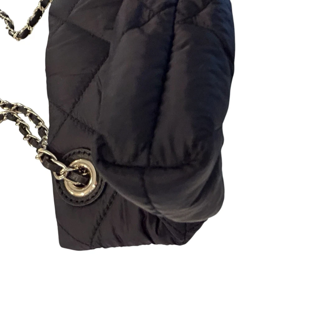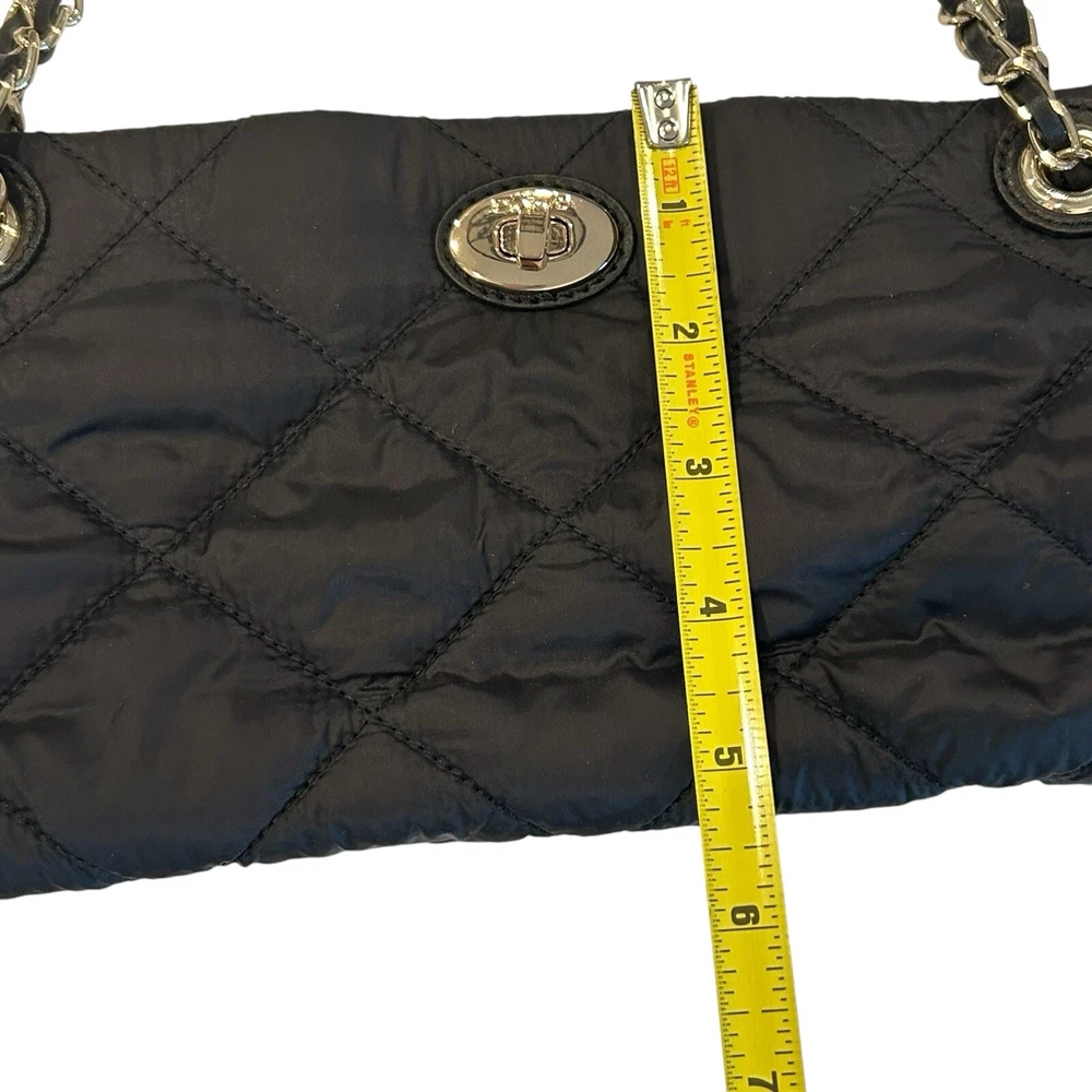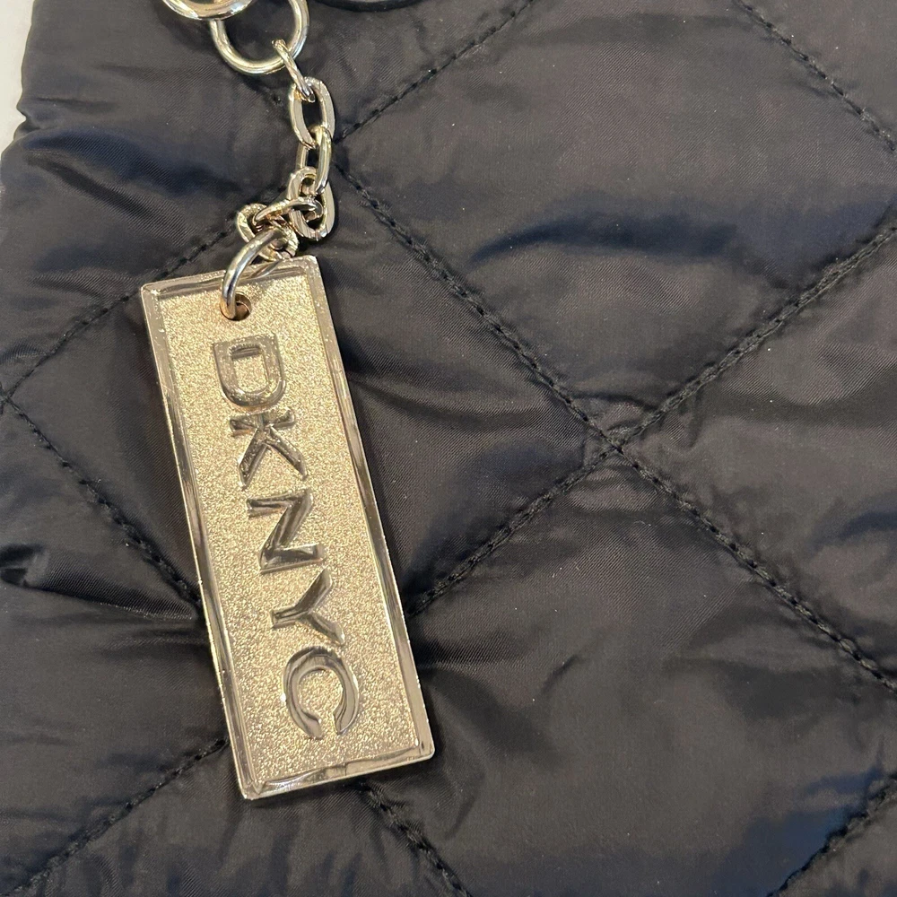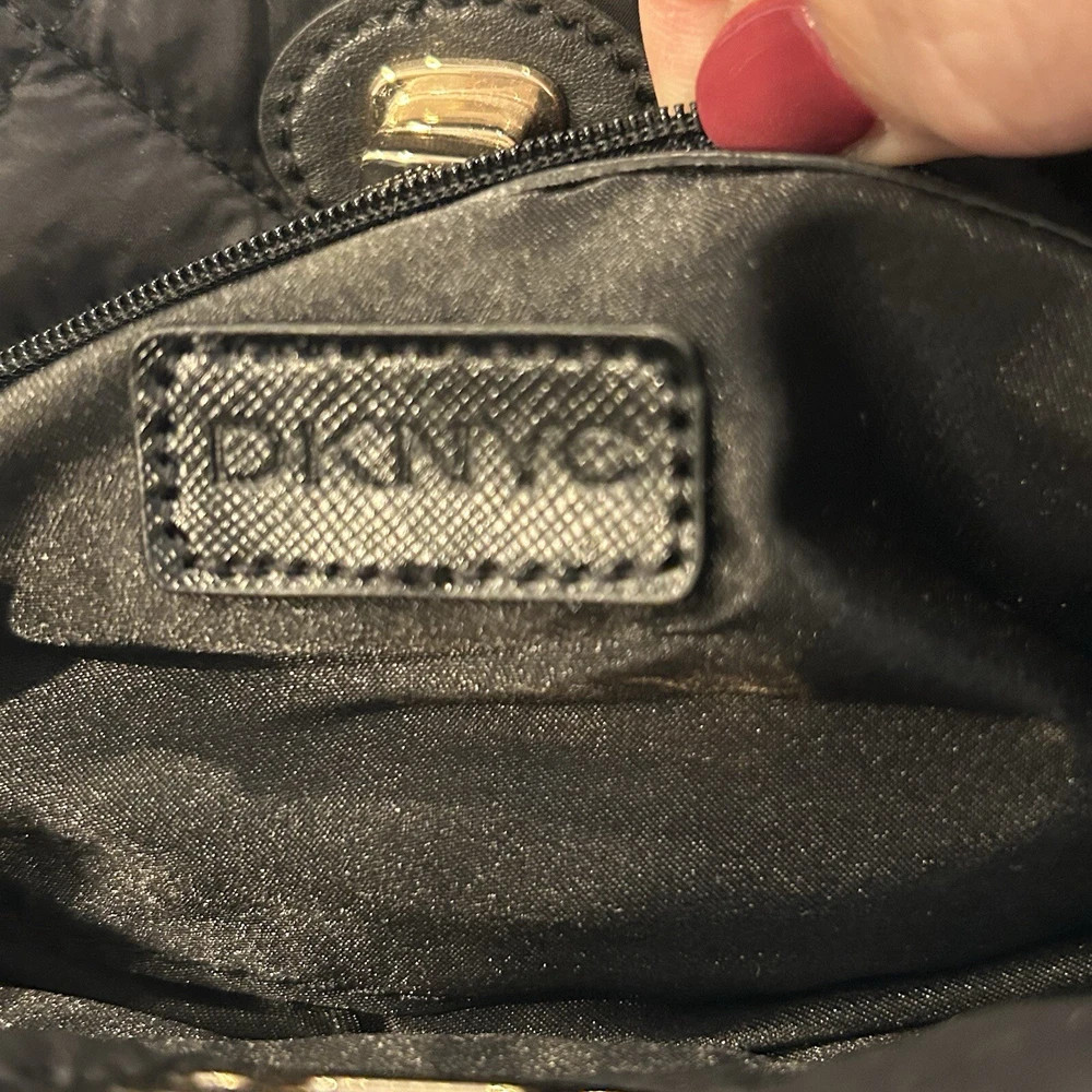 DKNYC Quilted Black Clutch Purse Gold Metal Chain Straps Evening Bag. Good pre-owned condition with normal wear, no tears or stains, see photos for details. Measurements in photos and are approximate. (111)