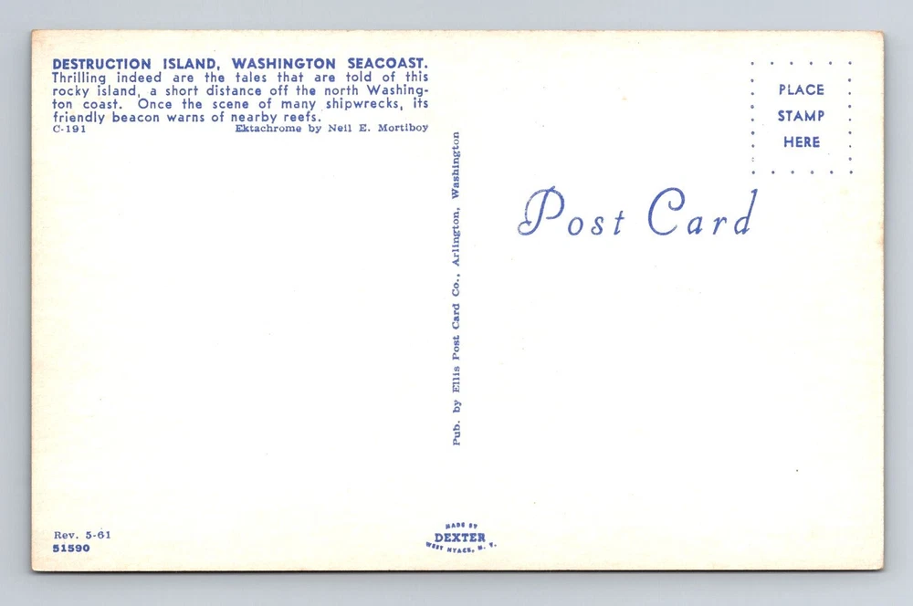 Size: Standard (5.5 x 3.5 in) Subject: Cities & Towns Material: Paper Region: Washington Country: USA Country/Region of Manufacture: Unknown Theme: Cities & Towns Unit of Sale: Single Unit Era: Vintage Type: Printed (Lithograph) City: Destruction Island Postage Condition: Unposted Original/Licensed Reprint: Original
