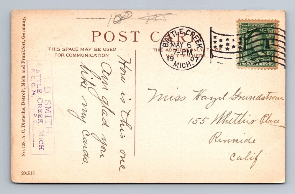 Theme: Cities & Towns Type: Printed (Lithograph) Region: Michigan Country/Region of Manufacture: Unknown Material: Paper Era: Vintage Size: Standard (5.5 x 3.5 in) Postage Condition: Posted Original/Licensed Reprint: Original Country: USA Subject: Cities & Towns City: Detroit Unit of Sale: Single Unit