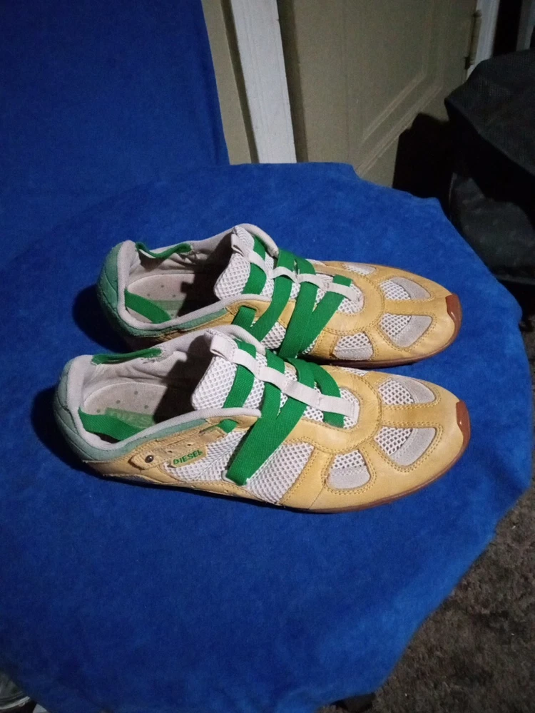 Elevate your tennis game with these stylish and comfortable Diesel tennis shoes for men in size 12. Featuring a low top shoe shaft style, these sneakers are perfect for both on and off the court. The multicolor design adds a touch of sporty flair, while the leather upper material ensures durability and longevity. With a style code of 101100013569, these shoes are part of the tennis shoes product line and are customized to fit your needs. Whether you're playing a game of tennis or just running errands, these athletic shoes will provide the support and comfort you need. So step up your game and add these Diesel tennis shoes to your collection today.