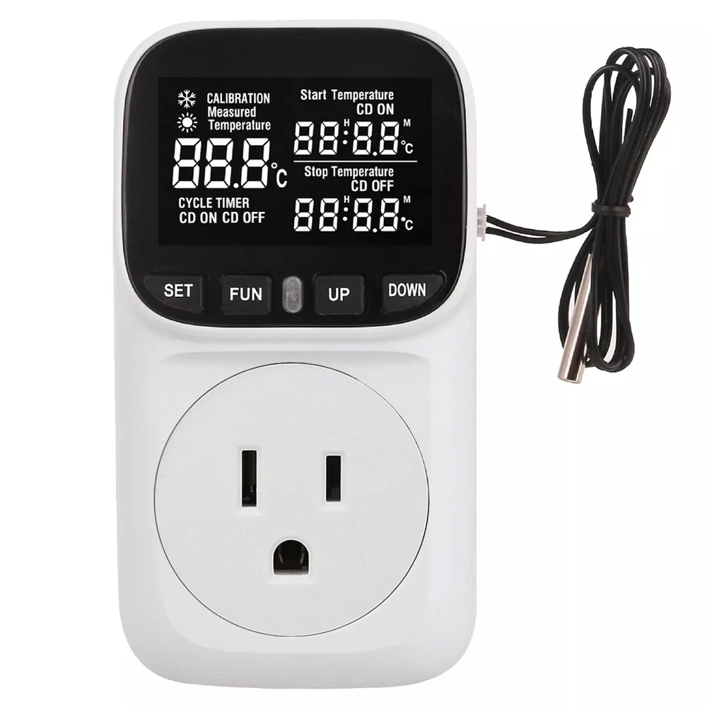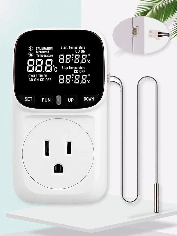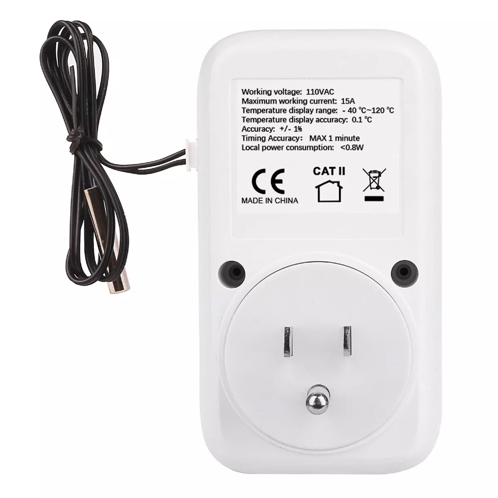Product Detail: Note:If you have any questions, please contact us before open any case, we promise will solve the problem for you. Thanks! This thermostat plug has temperature control function and timing function. It is widely used for aquarium, reptile, incubator, terrarium, freezer, refrigerator, heater, fridge, homebrew, vivarium, fermentation, pet breeding, heat mat, industrial equipment and other temperature-controlled system. Features: Temperature control function: Heating/cooling. Timing function: F01-F04 4 Modes, Cycle timing and Countdown. Memory function: all current settings will be saved after power off. Factory reset. Specification: Power Supply: AC 110V±15% 60Hz Temperature control range: -40~248℉ (-40℃~120℃) Control accuracy: ±1% Sensor: 2 meters Output: Max 15A/110V Timing accuracy: MAX 1 minute Local power consumption: <0.8W Note: 1. Please allow minor deviation due to manual measurement. 2. Due to the difference between different monitors, the picture may not reflect the actual color of the item. 3. Communication is the best way to solve the problem. If you have any problems after purchasing, please contact us in time, before opening return or case. Payment: We accept PayPal ONLY currently. Payment must be made within 3 business days. Shipping: 1. Item will be shipped within 1-5 business days from CN Stock or US Stock according to the item location. 2. Sometimes the ship date will be delayed due to a shortage. We will inform you via message. 3. Please leave available address and phone # in delivery information. Seller are not responsible for wrong address. 4. Please indicate your personal requirement such as colors, packages, value of declaration etc. at PayPal's message when make payment. 5. We will NOT responsible for any delay during delivery including but not limited to customs postage checking, strike, force measure etc. Customs Declaration: Import duties, taxes and charges are not included in the item price or shipping charges. These charges are the buyer’s responsibility. Please check with your country’s customs office to determine what these additional costs will be prior to biddingying. Return & Refund: Returns are accepted within 30 days. Please read the item description and check the pictures carefully before bidding. Return or refund is available only if item DOA or there's error in item description causing the item not fitting your need. In such cases, seller pays for all related shipping cost if any. Returns are also acceptable if buyer purchased this by mistake and item still in good condition for reselling. Buyer is responsible for all related shipping cost. Feedback: As long as you are happy with your purchase, please kindly leave us for it is very important for our store performance. If there is any problem with your order, please contact us and give us a chance to resolve your problem Before leaving us a negative feedback.