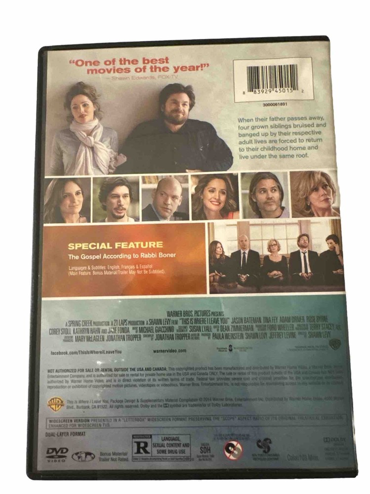 Get your hands on the hilarious movie "This is Where I Leave You" in multiple formats. Experience the comedic genius of the all-star cast in this must-watch film. Perfect for a night in, this movie will have you laughing from start to finish. Add it to your collection of DVDs and Blu-ray discs today!