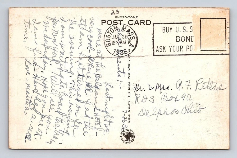 Greetings and Salutations! Welcome to The Vintage Postcard Company With Our Fully Stocked e B a y Store Postcard Size: Standard Vintage 3 1/2 by 5 1/2 (Unless Otherwise Noted in Title) USE THE EBAY PHOTO MAGNIFIER Examine photos carefully for condition and detail. Shipping & Handling USA : $2.00 USPS First Class Letter International : $3.00 USPS International First Class All Postcards are mailed in protective plastic sleeves. Placed inside a sturdy white 16pt cardstock photo mailer. A DO NOT BEND sticker is applied. We aim to ship within 24 hours of payment, Monday through Friday. All Postcards are mailed USPS First Class Letter (No Tracking.) Please allow 7-10 Days for your postcard to arrive. 3-4 weeks Internationally We do our best to answer any questions or correct any problems should they arise within 24 Hours. Your Support Means the World to Us. Thank You for Choosing Our Small Business!