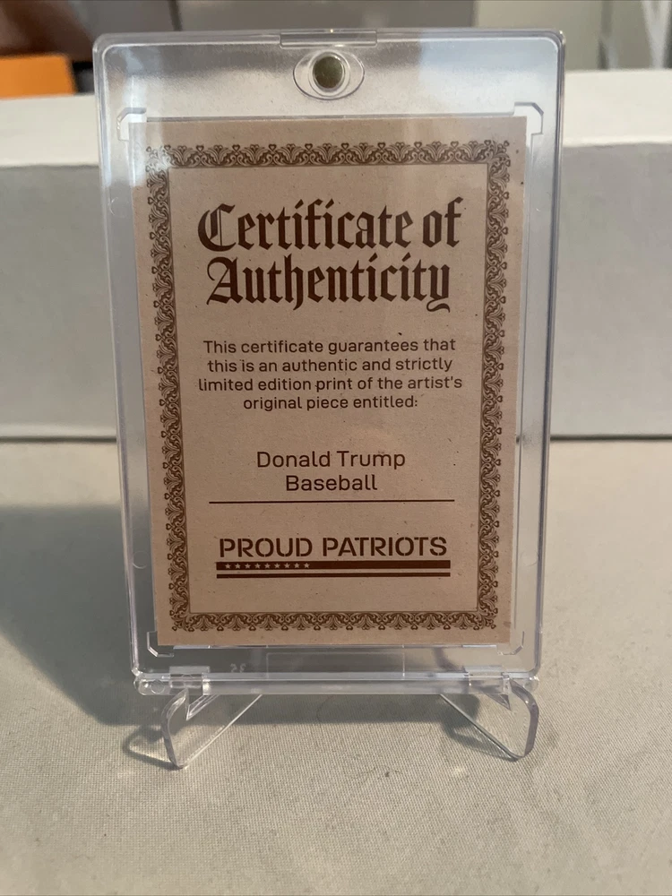 Own a piece of history with this limited edition Donald Trump trading card. Featuring the 45th president of the United States in a baseball-themed design, this card is a must-have for any collector or fan of US Presidents and politics. With its unique design and limited availability, this trading card is sure to be a valuable addition to your collection. Don't miss out on this opportunity to own a piece of presidential history.