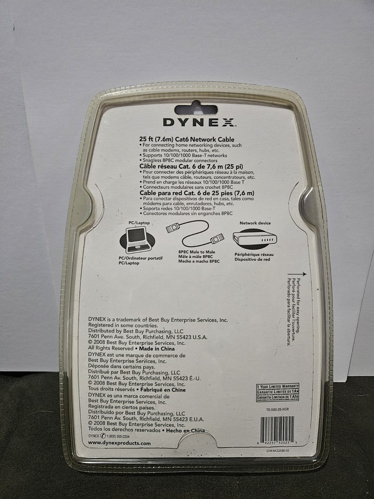 The Dynex Cat6 Premium Network Cable is a high-quality networking cable designed for reliable and fast data transmission. With a length of 25 feet, this gray cable is perfect for connecting computers, routers, and other networking devices. Made by the trusted brand Dynex, this Cat 6 cable ensures a solid connection and smooth data flow for all your networking needs.