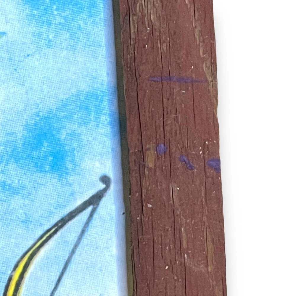 El Apache Loteria Framed Print Rustic Distressed Wood Mexicana Design "Transform your space with the rustic charm and vibrant design of El Apache Loteria Framed Print. Crafted from high-quality wood, this Mexican-inspired artwork is a striking addition to any room. Captivate your guests with its unique character and bright colors. Perfect for anyone who loves bold, eccentric décor. The print is in good used condition and ready to hang. There is some wear on the frame and some paint stains. The print is also buckled in a few places.