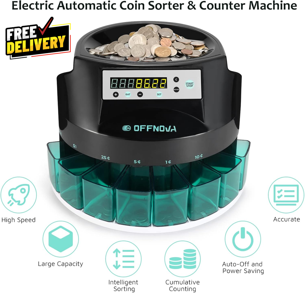 ultimatesavvyshop New Arrivals Add to Favorite View Feedback Contact Electric Automatic Coin Sorter & Change Counter Machine, Coins up to 300 Coins per Minute, Large LED Digital Display, Supports All Denomination of US Coins ? PLEASE CONTACT US FIRST BEFORE TAKING ANY ACTION ? If you face any kind of issue , please reach out to us directly . Especially before leaving Negative Feedback, opening an “Item Not Received” case, or starting a Return . ? We are always happy to assist and resolve any problem quickly and professionally! If you have any questions or require assistance, please don’t hesitate to reach out. Description Item model number EC50 Number of Items 1 Color Green Manufacturer Part Number Hardaway Item Weight 9.9 pounds Is Discontinued By Manufacturer No Product Dimensions 14 x 13 x 10 inches Easy to Use. Simply pour the coins into the hopper then press start, it dispenses coins into coin trays and/or paper coin wrappers right out of the box in counting mode, adding mode, and batching mode Accurate and Reliable. With counting reports on an LED display and simple-to-set button controls, it precisely keeps a running total of all the coins sorted, both in number and value, as well as the counts of each individual denomination. If it's beyond a single maximum run, the previous records will be calculated to the next Counting Speed. It counts 330 coins per min by the same denomination and 210 per min by the mixed. It gets your task done and you out the door in a quick manner, which provides extra time for counting the coins twice in the interests of error detection Decent Loading Capacity. Free yourself from babysitting the coin sorter. With a hopper capacity of 300-500 coins and each tray capacity of 80-150 coins, It holds hundreds of coins simultaneously and fits most of the moderate sorting works Effortlessly Sort Mixed Change. Read all types of US Coins including pennies, nickels, dimes, quarters, half-dollar, and dollar coins. No trouble sorting through even relatively obscure coins like the dollar and half-dollar coin. Product description Don’t want to sit around and micromanage coin-wrapping, then OFFNOVA Hardaway is worth your investment. It will sort or group coins according to their variety. In batch counting, each denomination can be assigned with a 26 group preset quantity. Count: Use the simple count mode to calculate the value of loose change while also separating it into each denomination. Add: By default Add Mode is always active and will combine counted coin amounts into a grand total. Batch: Enter custom batch amounts from 1 to 950 to fit any need. It will stop operation and alert whenever a set batch total is reached. Report: Clear on-screen reporting at the push of a button. See the grand total for value and count as well as breakdowns for each denomination. All-in-One Coin Handling Machine Power Consumption: Max 45W Hopper Capacity: 300-500 Coins Each Drawer Capacity: 80-150 Coins Sorting speed: Max 330 Coins Batch Present Number Display: 3 Digits LED Counting Number Display: 4 Digits LED Package Content: 1 x Coin Counter with 6 trays Best Practices To get the best results and avoid regular operational issues, it's highly recommended that 1. Clean the Hardaway thoroughly with an air duster or a soft cloth after a heavy work 2. Don't feed too fast and put odd-sized foreign coins or it will be jammed 3. Make sure the coins are not especially dirty or grimy as this can cause a jam 4. It Counts coin value. ABOUT US Prior to making any purchase from our store, we’d like to introduce ourselves. My name is Shahzad Yaqub , and I am the proud owner of Epic Emporium Deals , located in the great state of Illinois, USA. I have been an active and trusted eBay seller since Jan 14, 2025 . At Epic Emporium Deals , we are committed to offering competitive prices and top-quality products . Our extensive collection features a wide variety of items, including media such as books, movies, music, and games , as well as electronics, toys, sporting apparel, clothing, tools , and general home and garden essentials —and much more! Your satisfaction is our priority, and we look forward to providing you with an exceptional shopping experience. SHIPPING We are always working hard to ensure your package arrives as soon as possible. Please understand that some factors like weather, high postal traffic, and the performance of shipping companies are outside of our control. We offer free shipping to the lower 48 states and ship within 2 business days of payment, usually sooner. We do not accept P.O. Boxes. Please provide a physical address. For shipping outside of the continental USA, we only use eBay's Global Shipping Program. The item is shipped to IL and then sent to the rest of the world. International customers are responsible for all duties and taxes. Continue to 'check out' to calculate costs for shipping the item to your country. Messages regarding eBay's Global Shipping Program MUST be directed at eBay EXCLUSIVELY. RETURNS We do not accept returns under normal circumstances. However, we will gladly consider a return if the item is received broken or if the wrong size is sent to you. In all other cases, returns will not be accepted. CUSTOMER SATISFACTION We try our very best to make sure every customer is completely satisfied. If there's a problem, message us! We're happy to help.