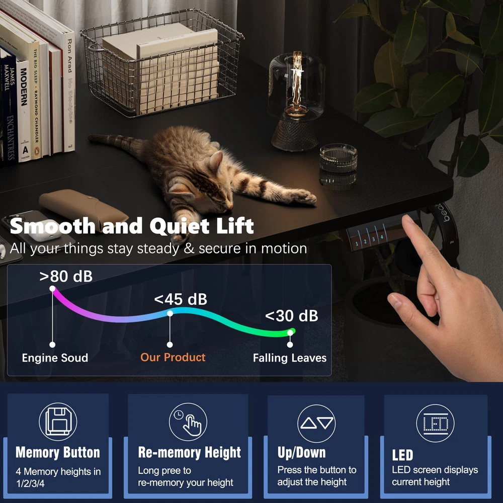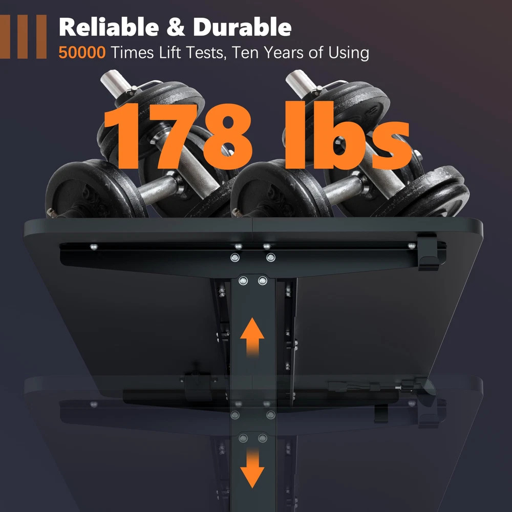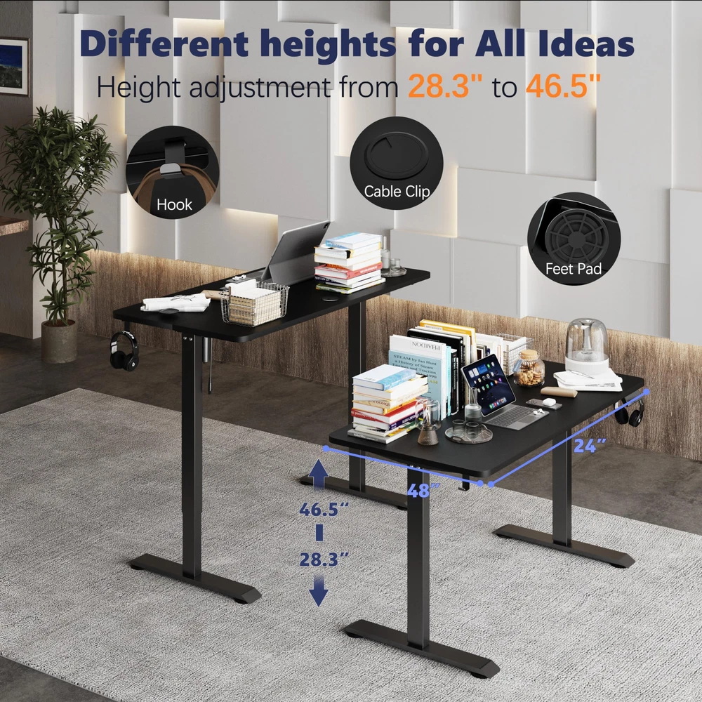 【Rock-solid Construction】--This standing desk with an industrial-grade sturdy alloy steel frame combined with a durable desktop allows for a 178 lbs weight capacity , ensure stability and durability for long-lasting usage. Even at full height, electric standing desk can eliminated any distractions from wobbling. 【Adjustable Standing Desk】-- Effortlessly transition from sitting to standing (28.35" to 46.46")with easy touch of button .standing desk adjustable height with 4 lockable wheels, which makes your office desk moves eaily.The reliable motor operates quietly (under 45 dB). 【Memory Height Sit Stand Desk】-- The digital display allows you to preset 3 heights, meet different height of your family mumbers. Encounters obstacles when lifting, the stand up desk will move in the opposite to avoid damage your family and your pets. 【Spacious an Safe Workspace】--This adjustable desk with 48” x 24” eco-friendly desktop provides you with a spacious workspace. Safe and Low-VOC Materials,insert healthy movement into your day. 【Easy Assembly】-- This standing desk has detailed installation manual and video.All holes are pre-drilled for quick 30-minute setup. 3-Year Warranty cover- any questions about home office desks, feel free to contact us.
