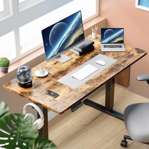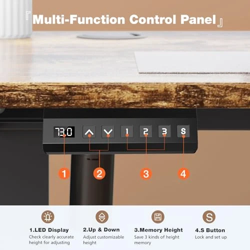Smooth Height Adjustable Standing Desk: You can freely adjust the height of this desk from 28.7 inches to 46.5 inches, or click the preset 1/2/3 buttons to quickly adjust to the height you are comfortable using. accurate and smooth lifting and lowering. This adjustable desk can help you work healthily by constantly changing the height Spacious & Safe Material Desktop: You can enjoy a healthy home life with our standing desk with an eco-friendly material desktop, which meets the EPA and CARB safe air standards. The computer desk is spacious enough for lots of stuff to be placed on it. Considerately designed with a round corner desktop and wire hole, 2 headphone hooks for you together to secure safety and convenience Upgraded Durable Motor: Our stand-up desk is equipped with a powerful and durable motor, which is also quiet and energy-saving. Our superior motor is tested around 50,000 and still runs normally. The quiet motor runs at a speed of 2"/second with low noise to avoid disturbance to others while operating the height-adjustable standing desk With Protection Functions: Our home office desks also include a child safety lock function, anti-collision function, and overload protection function. Safety lock function, in case of power failure during operation, the fixed position will not slip off. Overload protection, if the load weight of this electric computer desk exceeds the maximum loadable weight, the motor will automatically stop to prevent overload damage Please Note: You can easily install it according to the instructions and installation video we provide. If you have any questions about our sit stand desk, please don't hesitate to email us and we will do our best to help you solve the problems