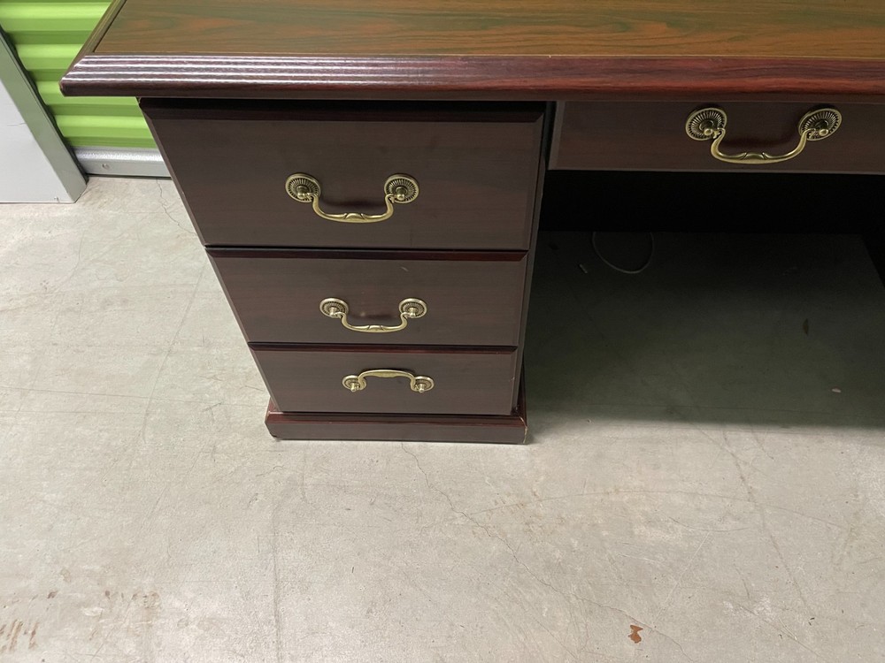 This elegant executive desk adds a professional and stylish look to any workspace. Perfect for home offices, business environments, or study rooms. In good condition and great for laptops, documents, and everyday office tasks. Drawers or compartments do not include a key, but everything works properly. Available for pickup or delivery. Message me to schedule. executive desk, elegant desk, office furniture, modern desk, workspace desk Type: Elegant executive desk Ideal use: Office, home office, study Condition: In good condition Extra details: Executive design, no key Includes: Desk only