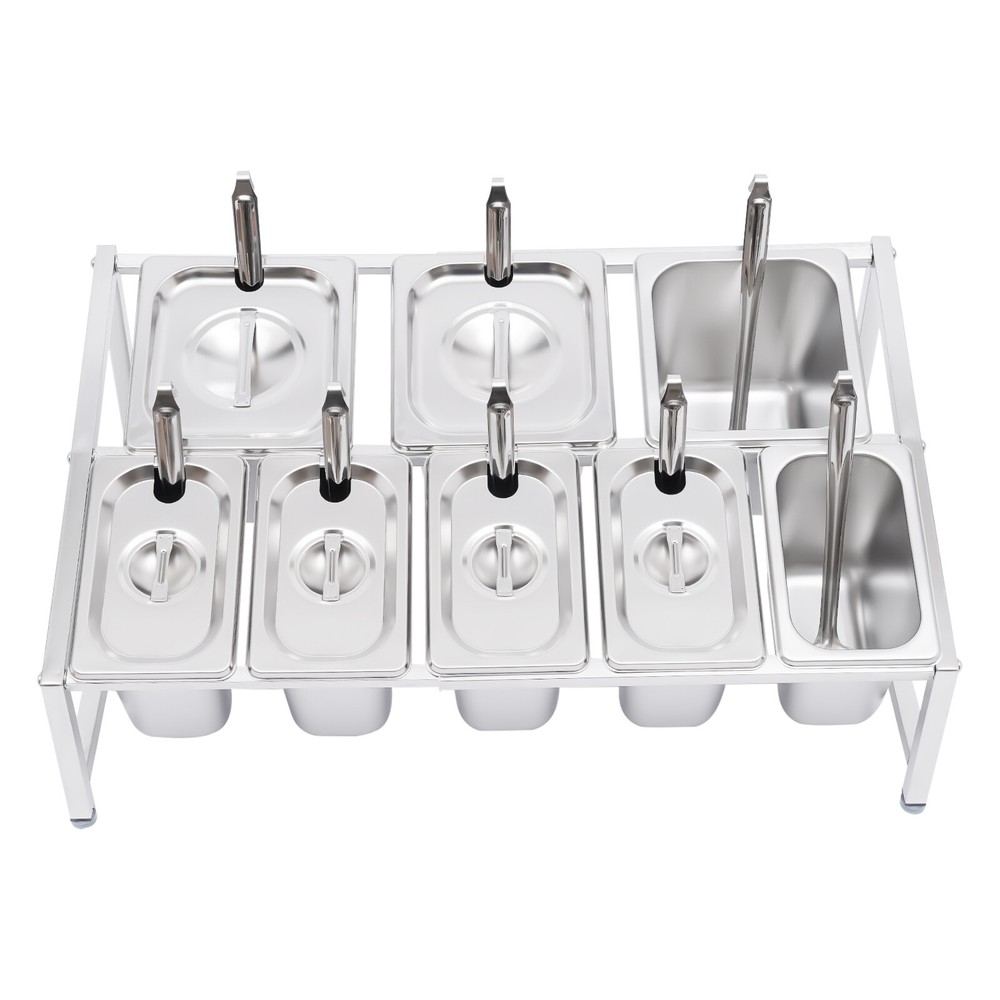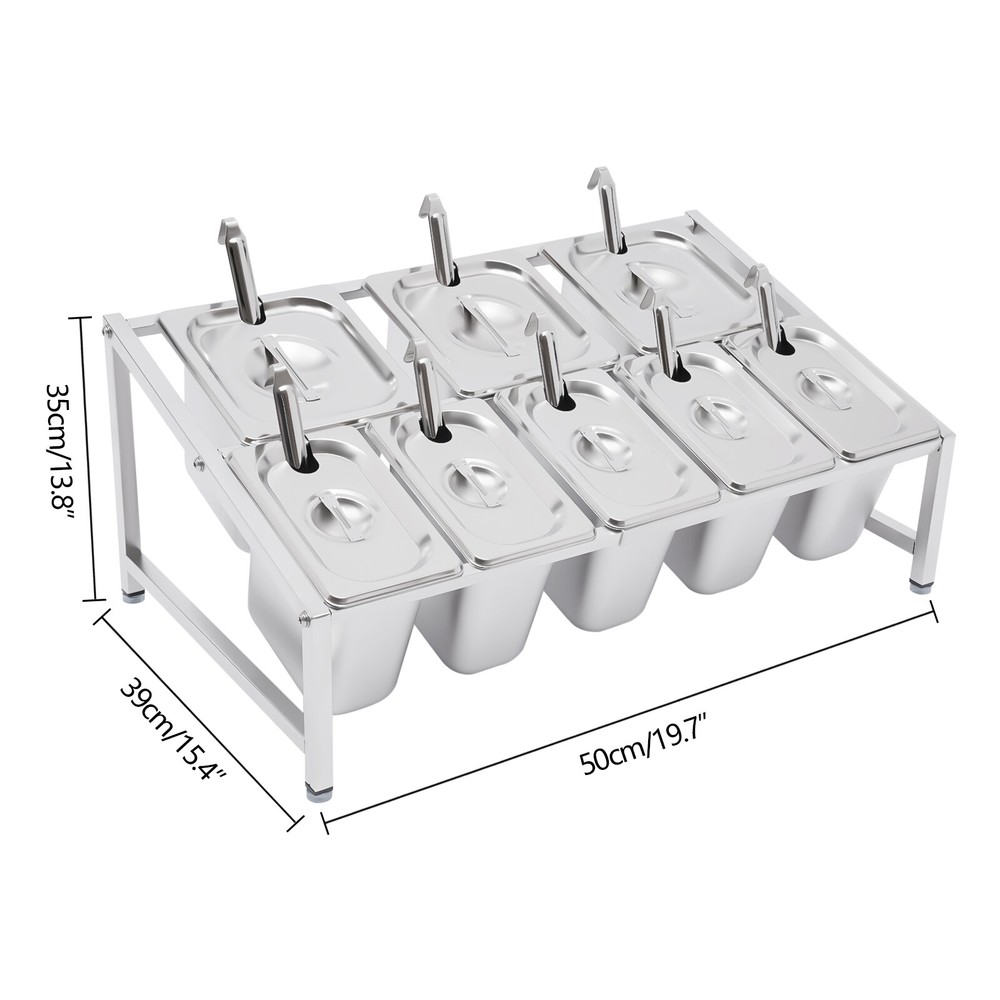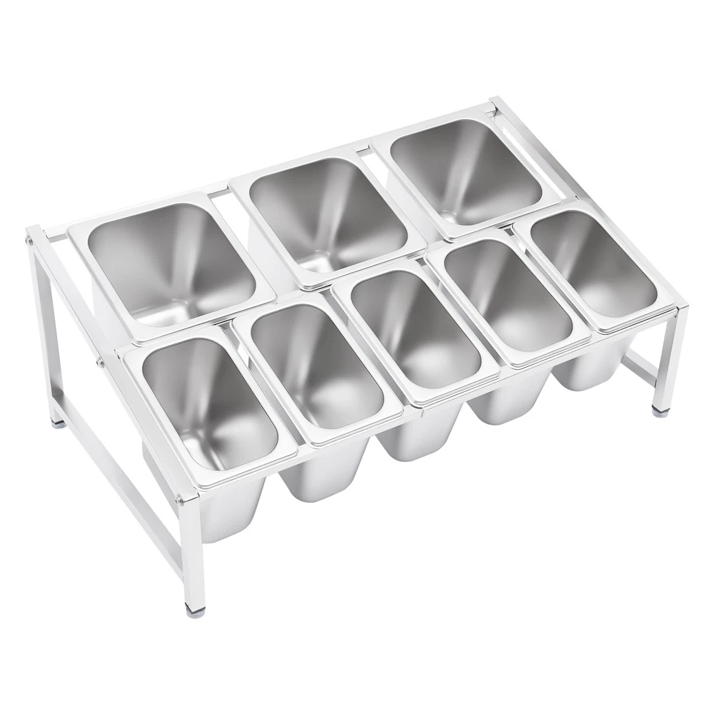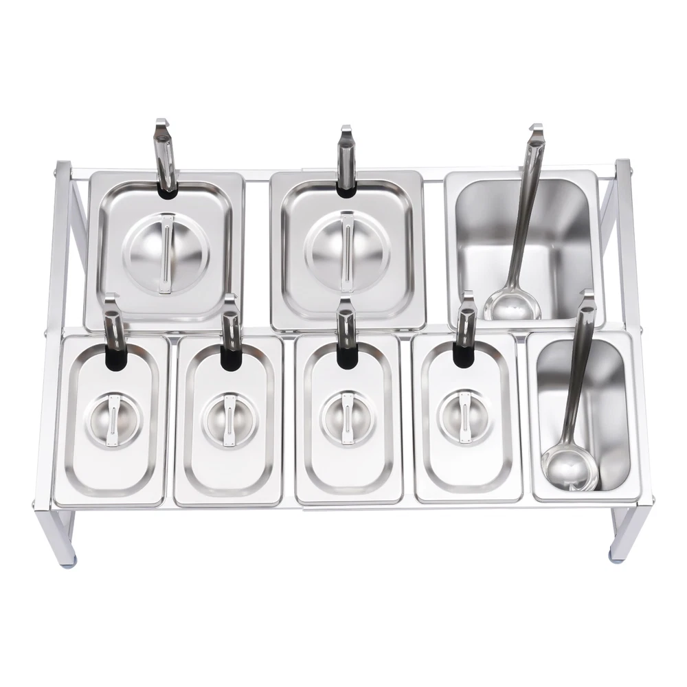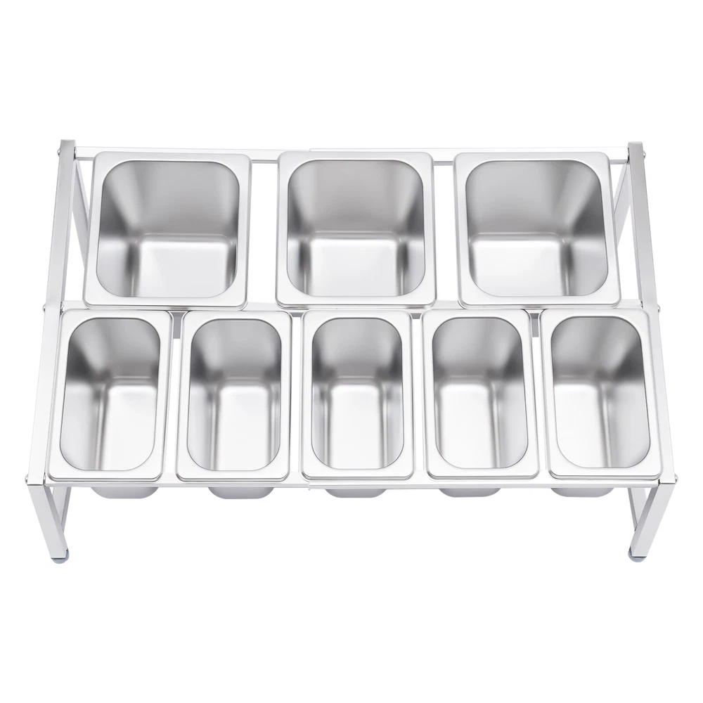 Expandable Spice Rack, 13.8"-23.6" 2-Tier Stainless Steel Organizer Shelf 8 Pans Description A Neat, Clean, and Stylish Kitchen Need a User-friendly Spice Rack to Store and Organize Your Abundant Spices for You. This Sturdy and Stable Shelf Not Only Effectively Uses the Vertical Space of the Countertop, but Also Easily Avoids the Embarrassment of Tipping over the Spice Pan. This Countertop Inclined Spice Rack Will Give You a Neat and Comfortable Kitchen to Enjoy Your Cooking! Specification Shelf Material: 304 Stainless Steel Pan Material: 201 Stainless Steel Color: Silver Installation Type: Freestanding Process: Polished, Electrolysis Special Feature: Expandable Spice Rack Number of Shelves: 1 Food Pan Quantity: 5 X 1/9 Pans + 3 X 1/6 Pans 1/9 Pan Dimensions: 17.5*11*15cm/6.88*4.33*5.9in 1/9 Pan Capacity: 1.6l/1.69qt 1/6 Pan Dimensions: 17.5*16.5*15cm/6.88*6.49*5.9in 1/6 Pan Capacity: 2.2l/2.32qt Shelf Dimension: 50*39*35cm/19.7*15.4*13.8in Shelf Length Range: 35-60cm/13.8-23.6in Load Capacity: 30kg/66lbs Packing Size: 48*34*21cm/18.89*13.38*8.26in Gross Weight: 7kg/15.43lbs Net Weight: 6.7kg/14.77lbs Key Features High-quality Material: the Shelf Is Made of High-quality 304 Stainless Steel, and the Pans Are Made of 201 Stainless Steel, Both of Which Are Strong, Wear-resistant, Rust-resistant, and Corrosion-resistant to Ensure Long Service Life. Wide Application: the Stable Performance of Stainless Steel Is Resistant to Acids and Alkalis, Making It Suitable for a Variety of Seasonings and Safe for Use in Dishwashers, Ovens, and Freezers. Large Capacity: with a Total of Three 1/6 Pans (2.32 Qt) and Five 1/9 Pans (1.69 Qt), This Countertop Inclined Spice Rack Set Can Be Used Not Only for Everyday Household Needs but Also in Restaurants and Canteens. the Large Capacity Also Eliminates the Need for Frequent Refilling. User-friendly Design: the Inclined Shelf Design Makes It Easy for You to Select and Access the Spices or Sauces You Need, Which Is Very Practical and User-friendly to Greatly Improve Work Efficiency. Space Saving: It Makes Good Use of the Vertical Space of the Countertop to Organize Your Kitchen Spices or Sauces in an Orderly Manner, Keeping Your Kitchen Neat and Tidy Telescoping Shelf: the Support Telescoping Tube Is Adjustable in Length (13.8-23.6in), Allowing You to Choose the Number of Pans to Hold Depending on Your Needs, As Well As Slide the Pans to the Left or Right for Easy Access As You Wish. High Load-bearing Capacity: Compared with Directly Placing the Food Pans on the Tabletop, Which Tends to Be Knocked over or Overturned, This Frame Adopts Durable Stainless Steel and Provides Firm Support . It Ensures a Good Load-bearing Capacity of up to 66lbs and Can Stably Accommodate Multiple Filled Pans. Easy to Install: Its Simple Structure and Complete Screw Accessories Allow You to Easily Complete the Installation. All You Have to Do Is Attach and Tighten the Shelf with the Screws Provided, Saving You Time and Effort. Easy to Clean: the Removable Pans and the Electrolytic Processed Stainless Steel, Make Cleaning a Breeze. You Can Clean It Directly with Water Without Taking Too Much Time. Easy to Store: the Detachable Shelf and Stackable Pans Will Easily Fit in Any Wall Cabinet Without Taking up Too Much Space. Customer Service: We Aim to Provide Quality Products and Services. If You Have Any Problems, Please Feel Free to Contact Us. We Will Reply and Solve the Problem for You As Soon As Possible. Details Practical Lid: Each Pan Comes with a Lid to Protect the Spices from Dust and Moisture, Maintaining the Hygiene and Quality of the Spices. a Recess on the Lid Ensures That the Spoon Is Securely Placed Without Affecting the Seal of the Lid. in Addition, the Top of the Lid Is Designed with a Handle for Your Convenience. Adjustable Foot Pad: the Adjustable Non-slip Feet at the Bottom Adapt Well to Uneven Countertops, Making Placement Stable Without Tilting or Slipping. It Also Protects the Countertop from Scratching. Rounded Corners: the Rounded Corners and Smooth Polished Edges Without Burrs Protect Your Hands from Scratches and Scrapes, Making Them More Secure to Use. Practical Ladle : Each Pan Is Equipped with a Ladle to Avoid Mixing Spices. the Ladle Also Makes It Easier to Control the Number of Spices Precisely for a Delicious Meal. Application It Is Widely Used in the Home or Commercial Kitchens, Canteens, Pantries, Cafes, Beverage Stores, and Restaurants to Store Condiments, Spices, Sauces, Jams, Sweet Soups, Coffee Beans, Sugar, Nuts, Grains, Etc. Package Included 2 X Side Support Frames 3* Telescopic Tubes 5 X 1/9 Pans 3 X 1/6 Pans 8 X Ladles 8 X Lids 4 X Adjustable Foot Pads All Accessories Required for Installation Notes Since the Shelf Is Too Long to Bear the Weight, the Shelf Can Only Be Adjusted to a Maximum of 60cm/23.6in. Please Allow the Slight Color Difference Caused by the Shooting Light and 1-3cm Error Due to Manual Measurement, and Make Sure You Do Not Mind Before You Order. Payment Delivery details Terms of sales About us Contact us Payment We accept ebay payment 。 Fees such as import duties, taxes are not included in the item price or shipping costs. These charges are the buyer's responsibility. Delivery details Shipping: 2-9 working days to: USA Terms of sales We maintain high standards of excellence and strive for hundred percent customer satisfaction. Feedback is very important to us. We hope that you contact us immediately before you give neutral or negative feedback, so that we can address your concerns. It is impossible to address issues if we do not know about them! About us Your satis faction is our ultimate goal. We work hard to earn your trust and future business. Our certified technicians have tested each item before shipping. The unit comes with 1 year limited warranty on all manufacturing defects. a) If you receive a defective item, you may return it or ask for a discount. Please contact us within 14 days after you receive the package. b) Wh