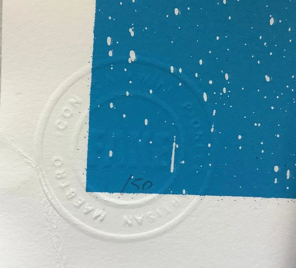 FAKE - Maestro, Limited Edition Silkscreen Print, Hand-Signed & Numbered Description: A striking limited-edition silkscreen print by the renowned Amsterdam-based street artist FAKE . This artwork, titled Maestro , is part of an exclusive edition of only 50 prints , each individually numbered and hand-signed by the artist in pencil. • Edition: Limited to 50 pieces • Technique: Silkscreen / Serigraph • Signature: Hand-signed and numbered (lower right), with dry stamp (lower left) • Dimensions: 70 x 50 cm (27.5 x 19.7 in) • Colour: Blue • Condition: Very good – a small crease near the dry stamp in the lower left corner, outside the image area, likely caused during the embossing process. • Frame: Not included Details: Created in 2023 , Maestro showcases FAKE’s signature urban and contemporary art style, blending meticulous silkscreen craftsmanship with street art influences. While the print is in very good condition overall , there is a minor crease near the dry stamp in the lower left corner of the paper, outside the image area . This crease appears to have occurred during the embossing process for the dry stamp and does not affect the artwork itself. A must-have for collectors of modern street art.