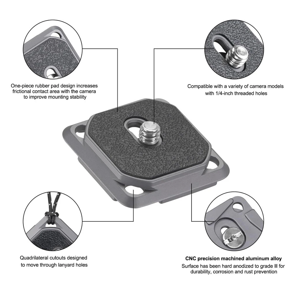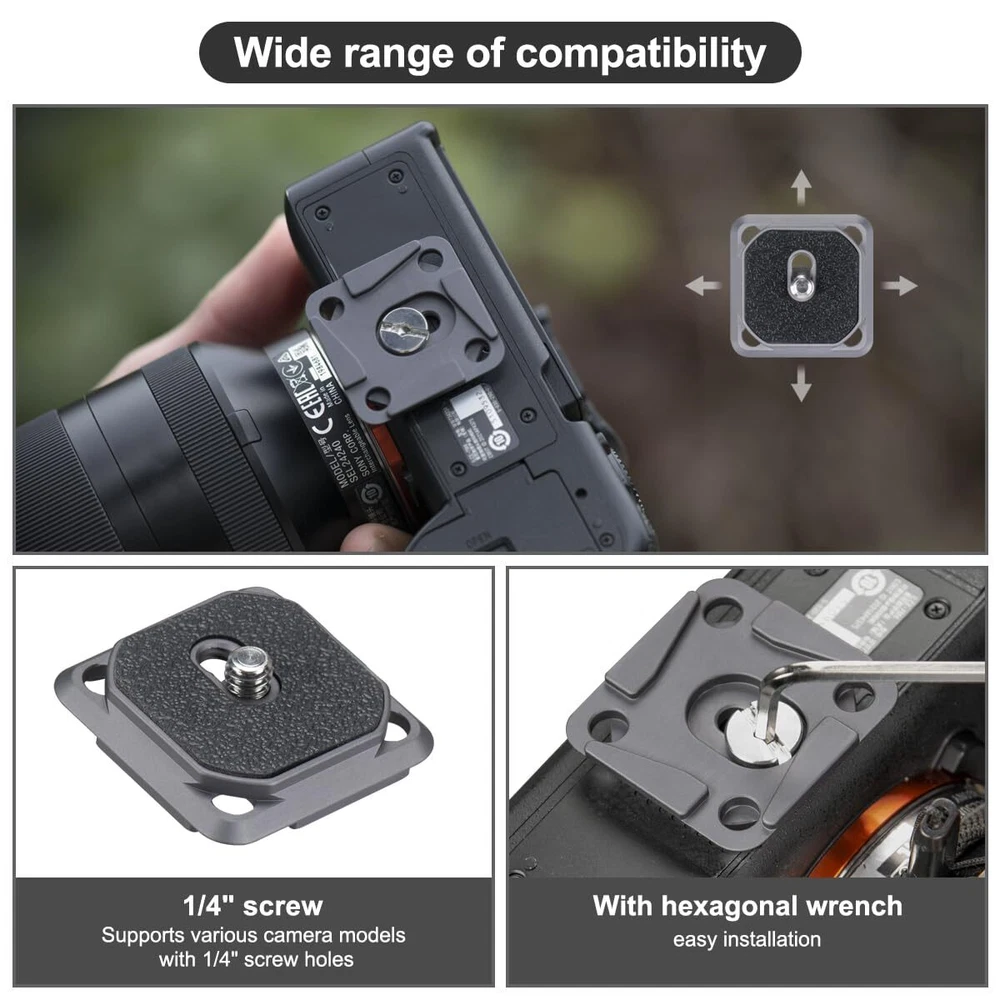 FANAUE CP-01 Camera Quick Release Plate has four side Arca-style slots for easy installation from any orientation, allowing for a seamless transition between landscape and portrait modes. Mount cameras or other devices in a variety of orientations, camera straps clip does not require frequent disassembly and reinstallation, saving you time and energy and is easy to use. The camera accessory complies with the 38mm standard of Arca-Swiss/RRS and can be mounted directly on the tripod ball head adapter, camera slider is compatible with Peak design capture clip and used with FANAUE camera clip. It is lightweight and sturdy and easy to switch between devices, especially recommended for use in outdoor activities. Camera quick release plate is made of high-precision CNC machined aluminum alloy, surface has been treated with level III hard anodization, which is anti-corrosion and rust-proof has high load-bearing capacity, anti-slip rubber pad can increase friction and protect your camera from damage, scratches and prevents unwanted vibrations while shooting, adding security to your device. The lightweight design of the quick release plate measures 38mm*38mm and weighs 23 grams, mount your photography equipment through the top 1/4-inch camera mounting screws and tighten with the included hex wrench, camera quick release plate compatible with Sony and Canon Nikon DSLR, video cameras, video lights, microphones, mobile phone mount and other action camera adapters. Brand:FANAUE SKU:CP-01 Weight:23g Size:38mm*38mm Compatible with:Arca Siwss/RRS and tripod ball adapter Material:aluminum alloy, stainless steel, high-quality anti-skid rubber Includes:camera quick release plate*1, hexagonal wrench*1 🍨【Compatible with Arca Swiss/RRS】Camera accessories in line with Arca-Swiss/RRS 38mm standard, can be mounted directly on the tripod ball head adapter, the camera slider compatible with peak design capture clips and FANAUE camera clips used in conjunction, easy to switch equipment, especially recommended for use in outdoor activities. 🍨【Multi-functional 4-side Arca-type slots】This square QR plate features four side Arca-type slots for easy mounting in any direction, allowing for seamless transitions between landscape and portrait modes, mounting cameras or other equipment in a variety of orientations, and eliminating the need for the camera strap clamp to be frequently disassembled and reassembled, saving you time and effort and making it easy to use. 🍨【Universal 1/4 inch screws】Quick release disc lightweight design with dimensions of 38mm*38mm and weight of 23g, mount your photography equipment via the top 1/4" camera mounting screws, tighten with the included hex wrench, the camera quick release plate compatible with Sony, Canon and Nikon DSLRs, cameras, video lights, microphones, mobile phone holders and other action camera adapters. 🍨【Aluminum alloy material】Camera quick release plate is made of high precision CNC machined aluminum alloy, the surface is treated with Class III hard anodic oxidation, anticorrosive and anti-rust, with high load-bearing capacity, the anti-slip rubber pad increases friction to protect your camera from scratches and prevent unwanted vibrations during shooting, adding safety to your equipment. 🍨【Lifetime warranty】The quick release plate comes with lifetime warranty, if you have any questions, please feel free to contact me and we will provide you with the best solution within 24 hours. The camera plate is connected to the backpack camera mount to provide greater convenience for outdoor photography. It is an excellent Christmas gift for fathers, daughters or friends, bringing them the beauty of recording life.