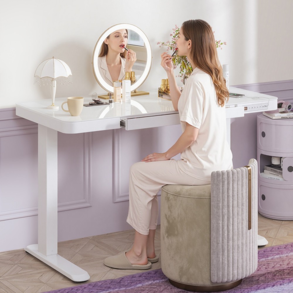 $ 99.11FLEXISPOT Glass Electric Standing Makeup Vanity Desk w/ Drawer & Type-C Charge