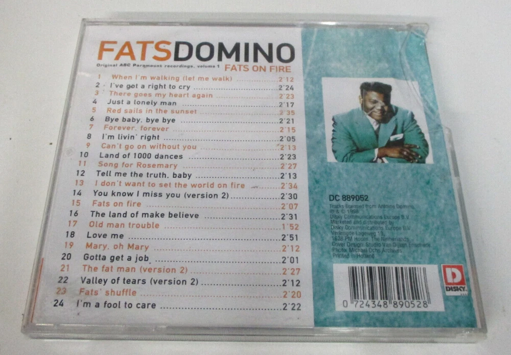 CD Details: Fats On Fire Fats Domino Song Titles - see photo CD is good - light scratch which doesn't affect play CD insert is good Crystal case is damaged, moderate wear, cracked as per picture Buyer to pay postage where indicated. Please contact me prior to bidding if you require further information.