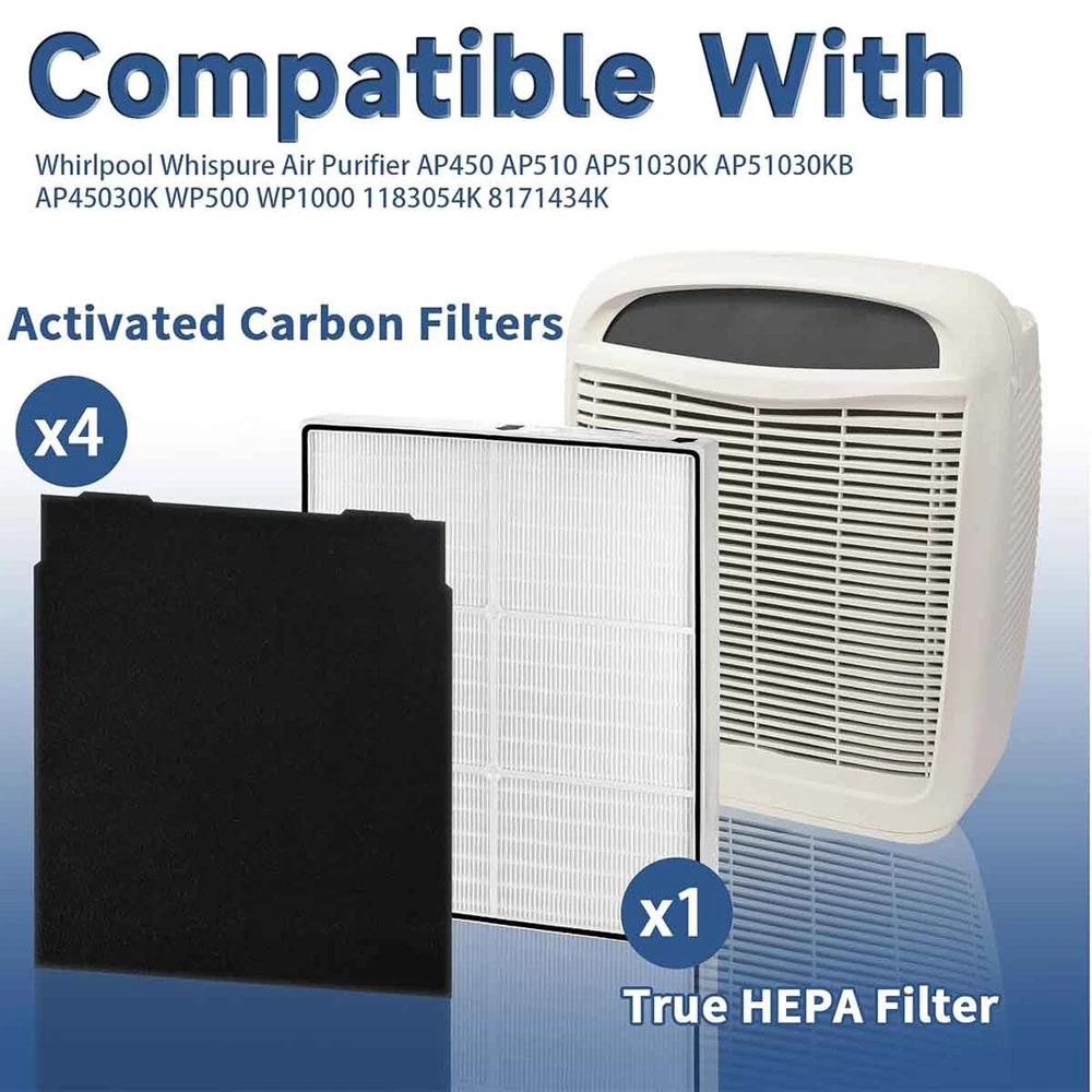 HEPA Filter Dimensions: 19 x 16 x 2 in Fits Whirlpool Filter 1183054K 1183054 This HEPA filter replaces part numbers: 1183054K, 1183054, 83375, 83376 The Carbon pre-filter replaces part numbers: 8171434K, 8171434, AP45030K, AP51030K Fits Whirlpool Whispure Air Cleaner Models: AP300, AP350, AP450, AP510, AP-300, AP-350, AP-450, AP-510, AP35030, AP45030, AP51030, AP-35030, AP-45030, AP-51030 For Whirlpool 1183054K (1183054) HEPA Filter Designed To Fit Whispure Air Purifier Models AP450 and AP510 AP45030HO; Compare To Whirlpool Part # 1183054, 1183054K, 1183054K Large, 1183054K Note: This product is not suitable for Envion AllergyPro Allergy Pro AP450 AP 450 !! The HEPA filter is constructed with over 95 indvidual pleats and 15 plastic guides maintain the rigidity of the filter HEPA filters capture 99.97% of particles down to 0.3 microns in size The carbon pre-filters control odors and stop larger particles from reaching your air cleaner For Whirlpool 1183054K True Hepa Filter contains a Synthetic-based filter membrane, which is designed to captures 99.7% of particles as small as 0.3 microns from passing through the air, including dust, pollen, and smoke. Use this item with Whirlpool air purifier models AP450 and AP510 . On Feb 13, 2025 at 05:21:57 PST, seller added the following information: