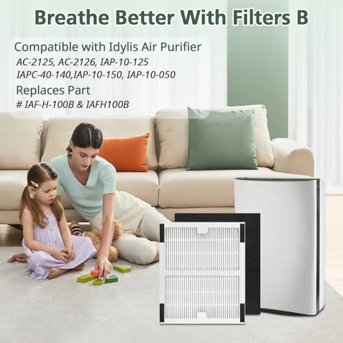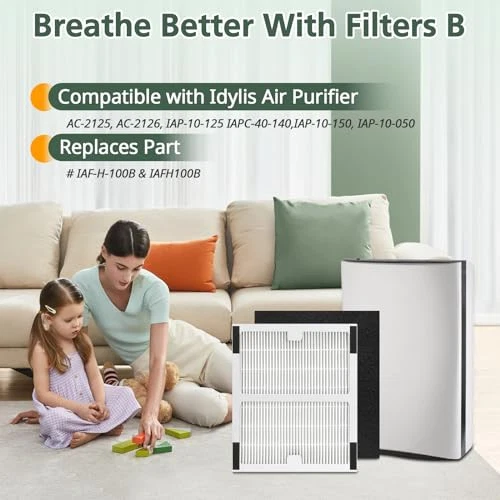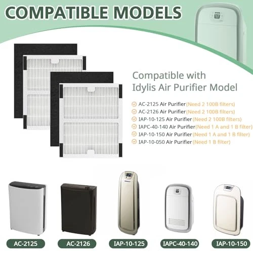 【】: The True HEPA IAF-H-100B filters for idylis air purifier models: AC-2125 AC2125 2125 (need 2 idylis B filters), idylis AC2126 AC-2126 2126 (need 2 idylis B filters). 【Idylis Filter b】 idylis IAP-10-125 (need 2 idylis B filters),IAP-10-150 (need 1 idylis A & 1 idylis B filter), IAPC-40-140(need 1 idylis A & 1 idylis B filter), IAP-10-050 (need 1 idylis B filter). 【Premium Quality】DOUBLE LAYER FILTRATION:HEPA filters can helps for large and airborne particles, including dust, pet dander, common pollutants, and fabric fibers. CARBON Filter are useful for more than 99% of odor such as pet odors,cooking, vocs. 【Pieces Include】 Package includes 2 idylis B *HEPA Filter +2 *Carbon Filter, Item Dimensions: 6.7x7.9x1.4". In order to improve the performance of the air purifier, please replace the carbon filter every 6-8 months. 【】: We value and satisfaction. If you have any problems with the filter fitting, please us through our home page.