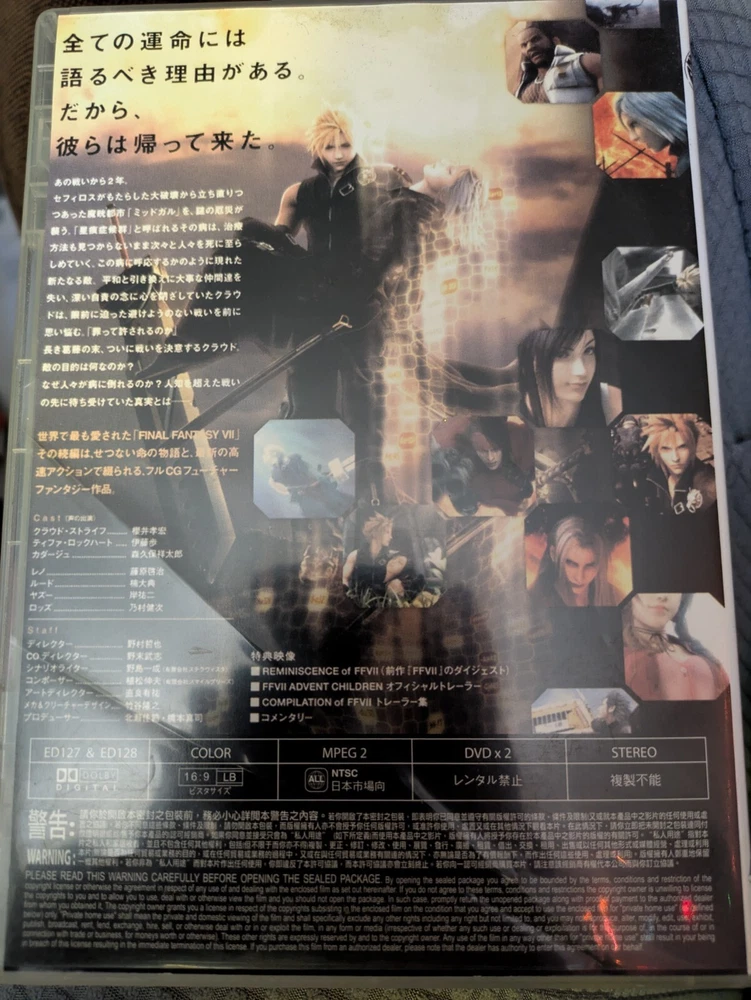 Movie/TV Title: Final Fantasy VII: Advent Children Format: DVD